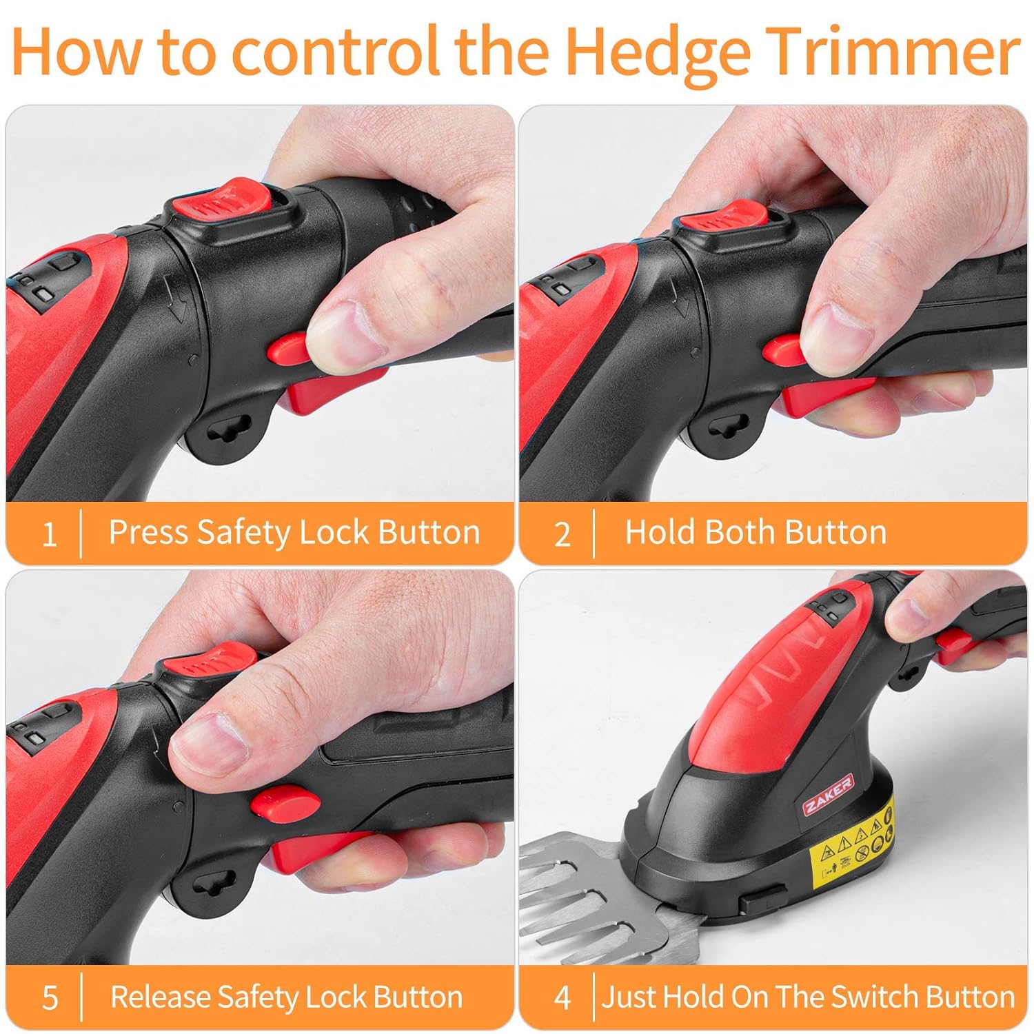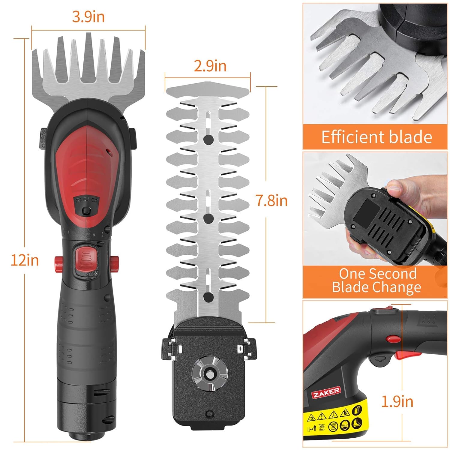 Magic Zaker Cordless Grass Shear & Hedge Trimmer - 7.2V Electric Shrub Trimmer 2-in-1 Handheld Hedge Cutter/ Grass Trimmer/ Hedge Clipper with Rechargeable Battery and Charger