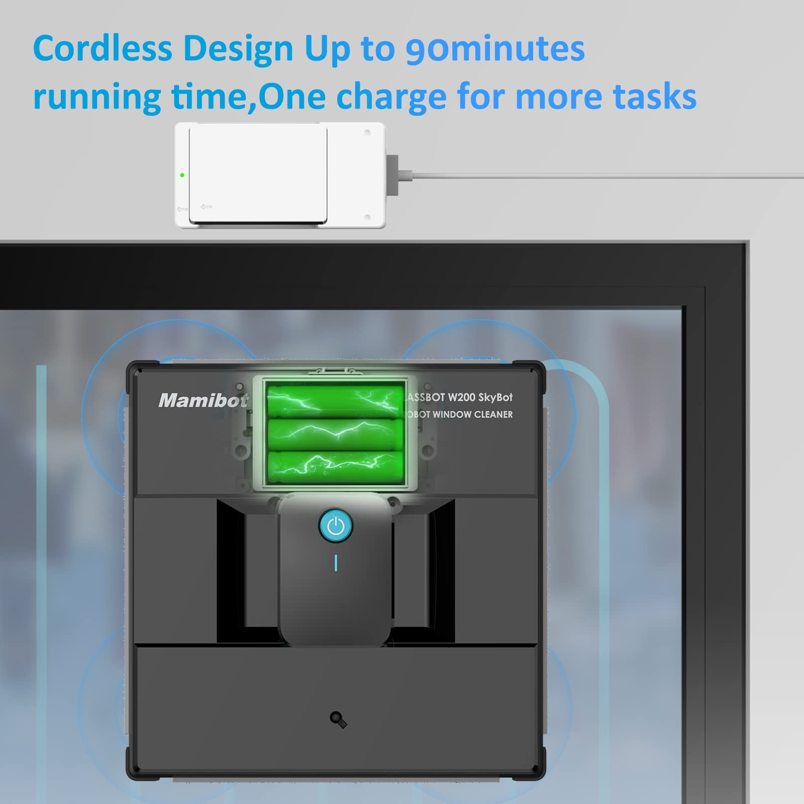Mamibot W200 Skybot Cordless Window Cleaner Robot Vacuum With Remote Control, Up To 90 Mins Working Time Glass Cleaning Tools With Strong Auto Suctionadjusting For Indoor Outdoor High Windows