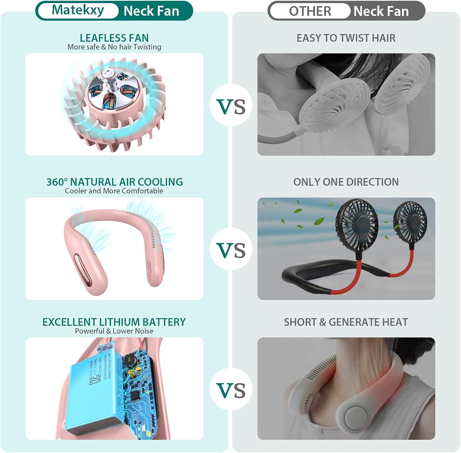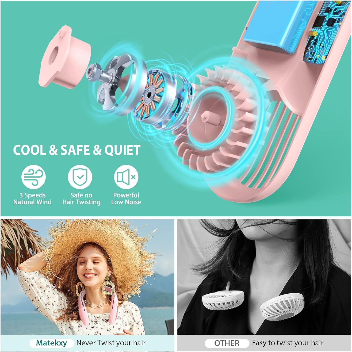 Matekxy Portable Neck Fan, Mini HandsFree Fan With Quiet And Lightweight, Personal Bladeless Fan Neck Cooler For Indoor Outdoor