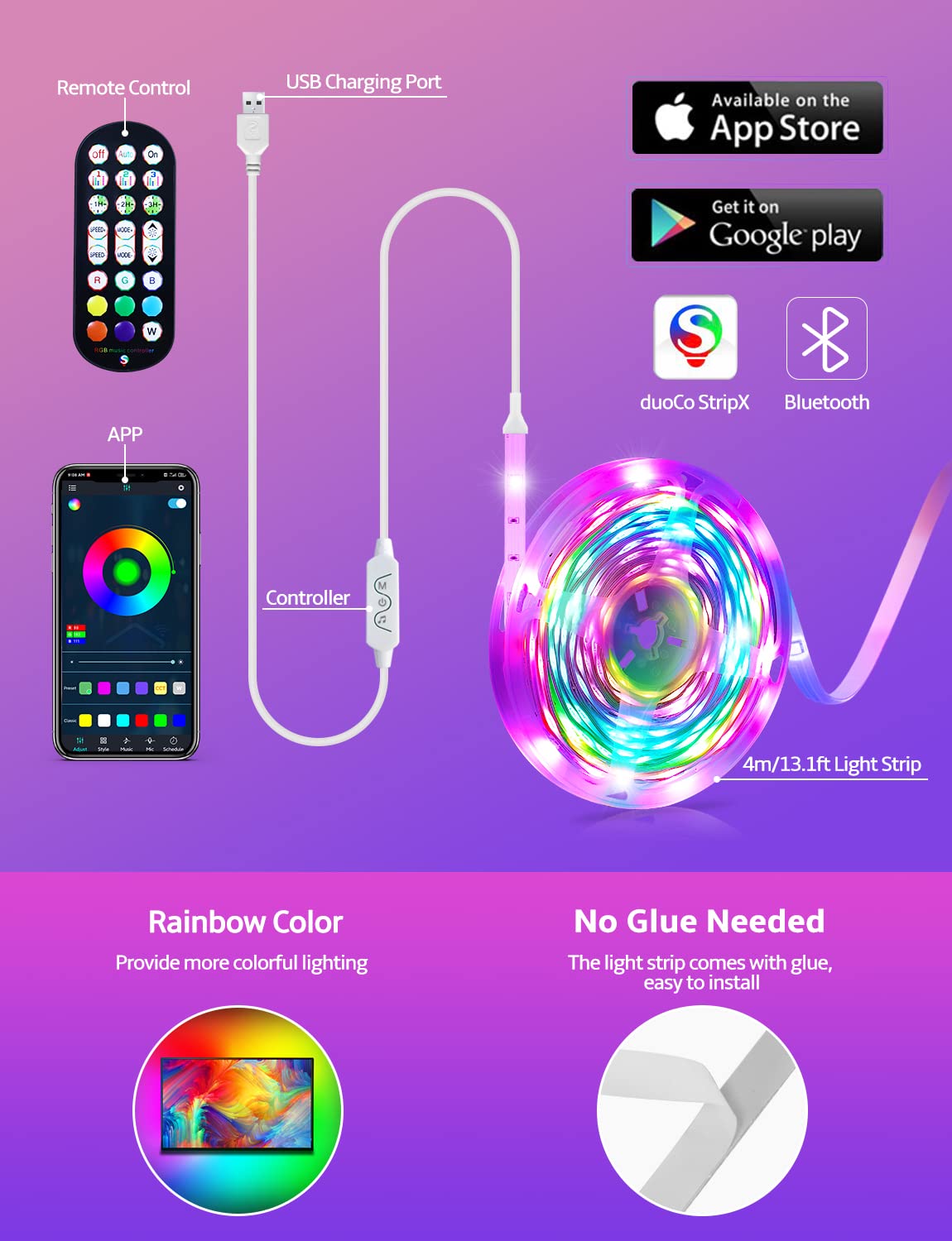 MATICOD LED Lights for TV Led Backlight, 13.1ft RGB Led Strip Lights for TV Lights Behind, USB Led Light Strip for 45-60in TV, Bluetooth APP Control Music Sync Strip Lighting for Christmas Decorations