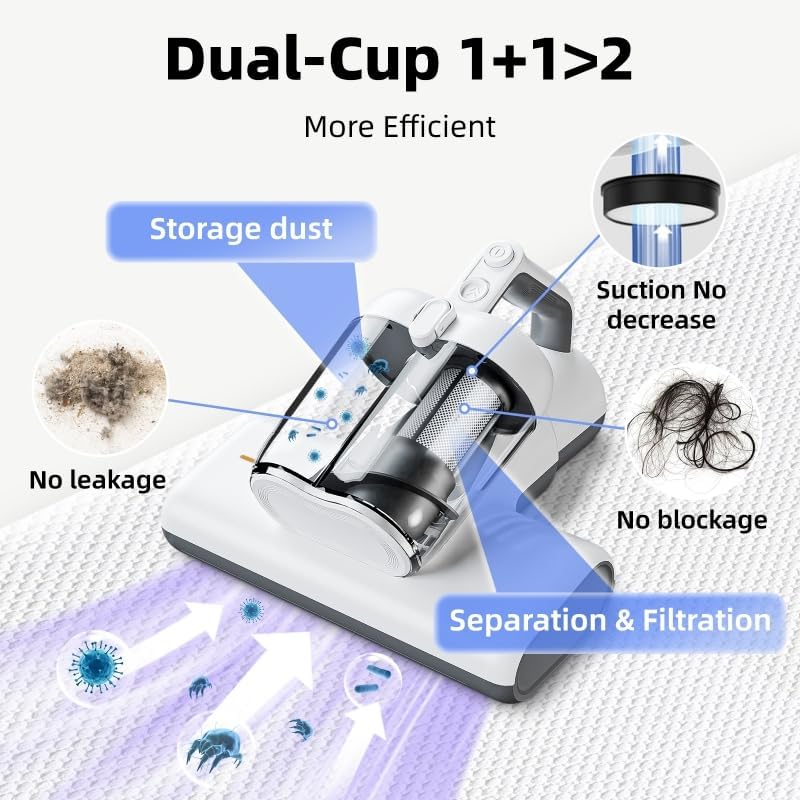 Mattress Vacuum Cleaner, Handheld Bed Vacuum With Wires, Dual Dust Cup Design With Hepa Filter For Removing Dust, Dandruff And Hair, Uv810
