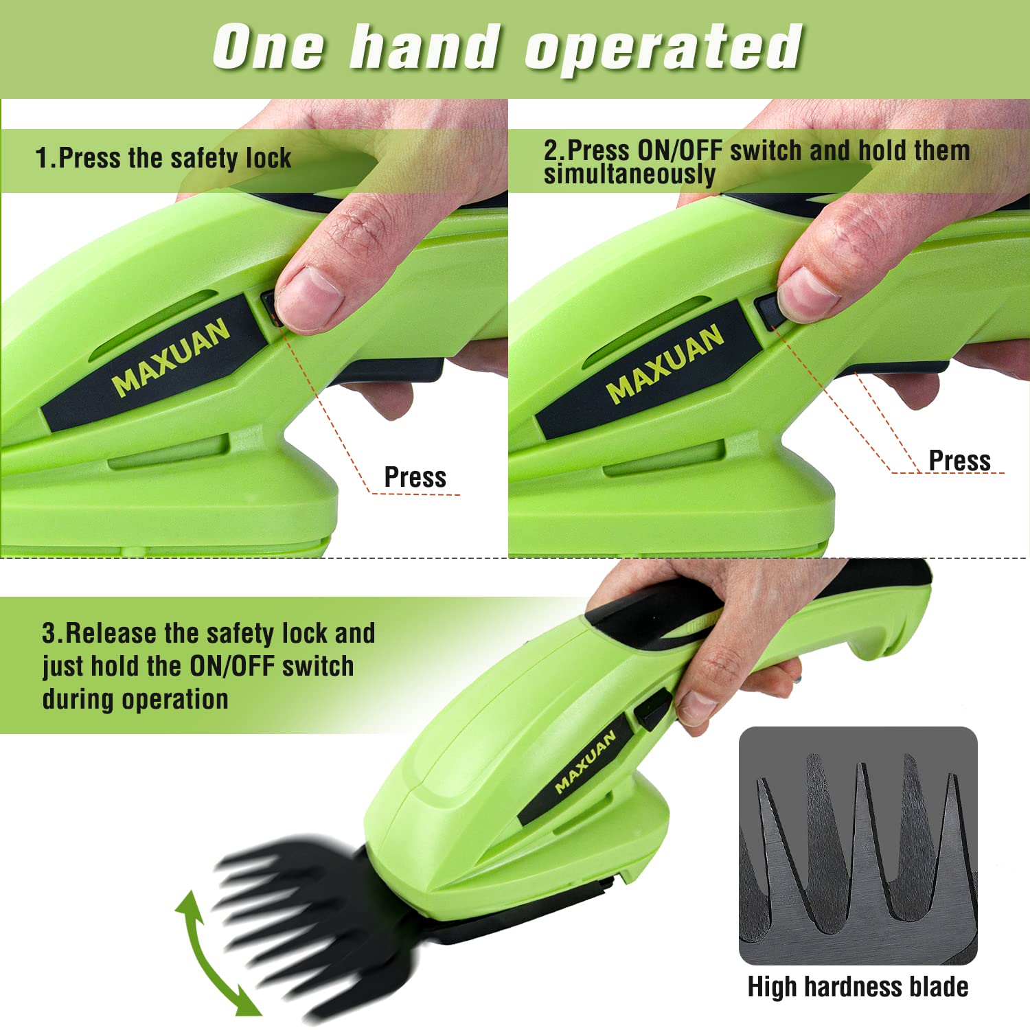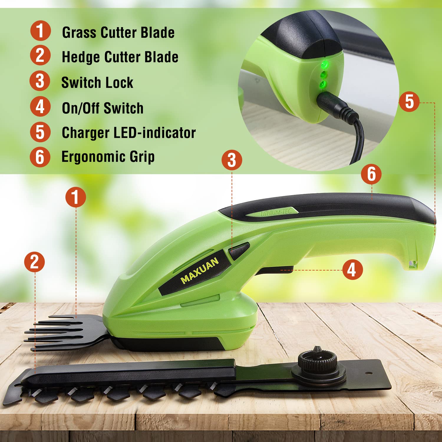 MAXUAN Grass Shear & Shrubbery Trimmer - 2 in 1 Handheld Hedge Trimmer