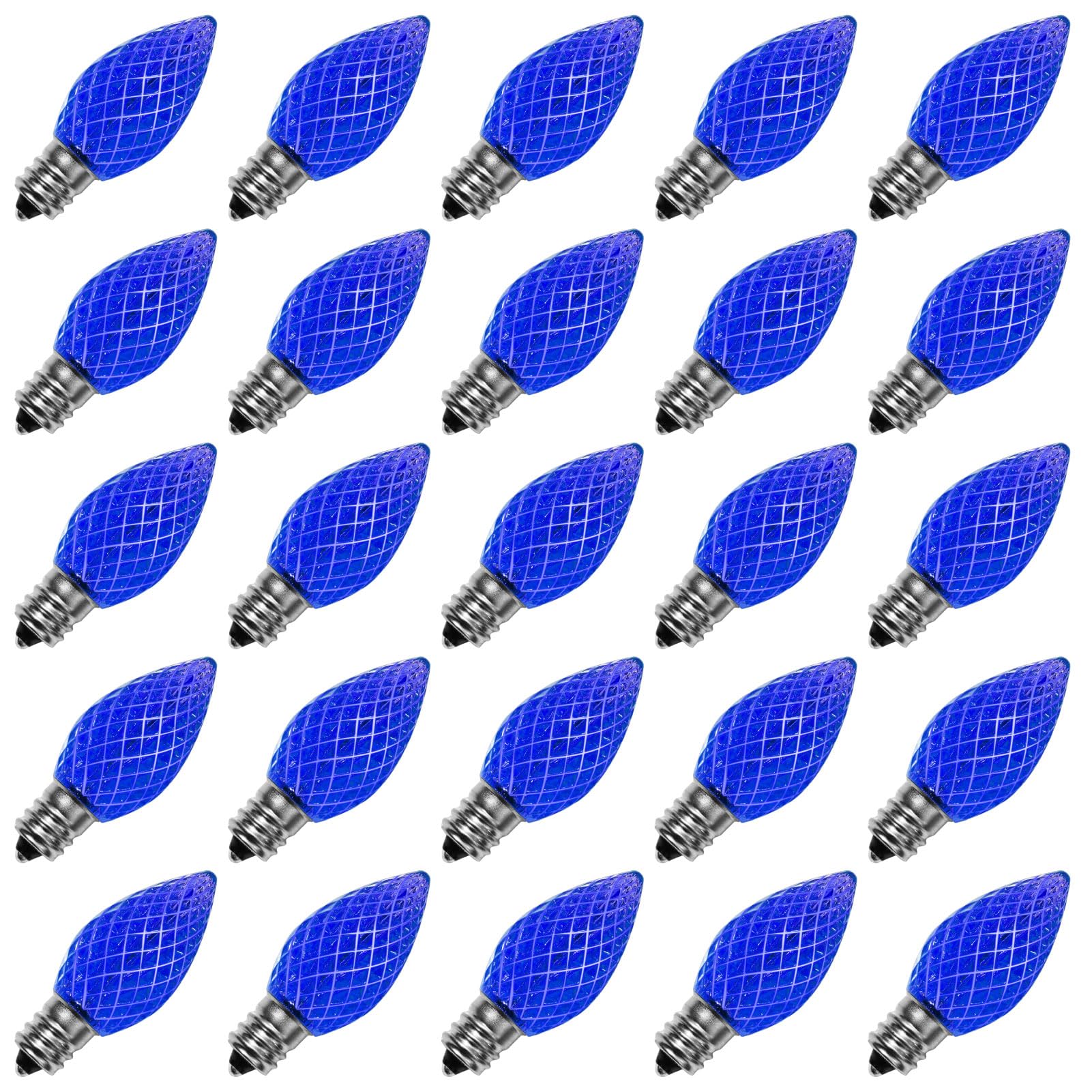 Meconard C7 Led Replacement Christmas Light Bulbs, C7 Shatterproof Led Bulbs for Christmas Indoor Outdoor String Lights, E12 Candelabra Base, Commercial Grade Holiday Bulbs, Blue, 25 Pack
