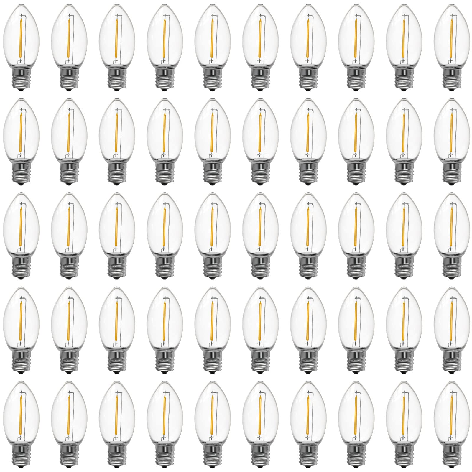 Meconard C9 Led Replacement Christmas Light Bulbs, C9 Shatterproof Plastic Led Bulbs for Christmas Outdoor String Lights, E17 Intermediate Base, Commercial Grade Holiday Bulbs, Warm White, 50 Pack