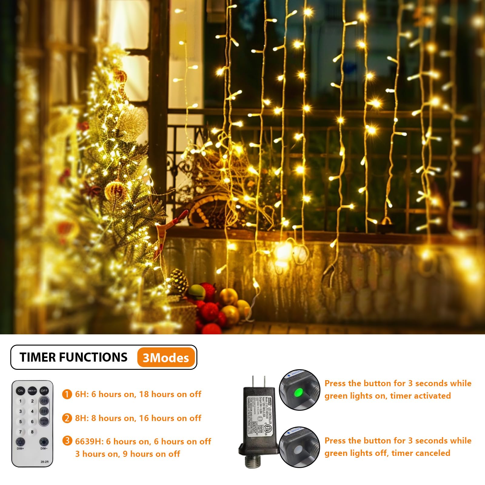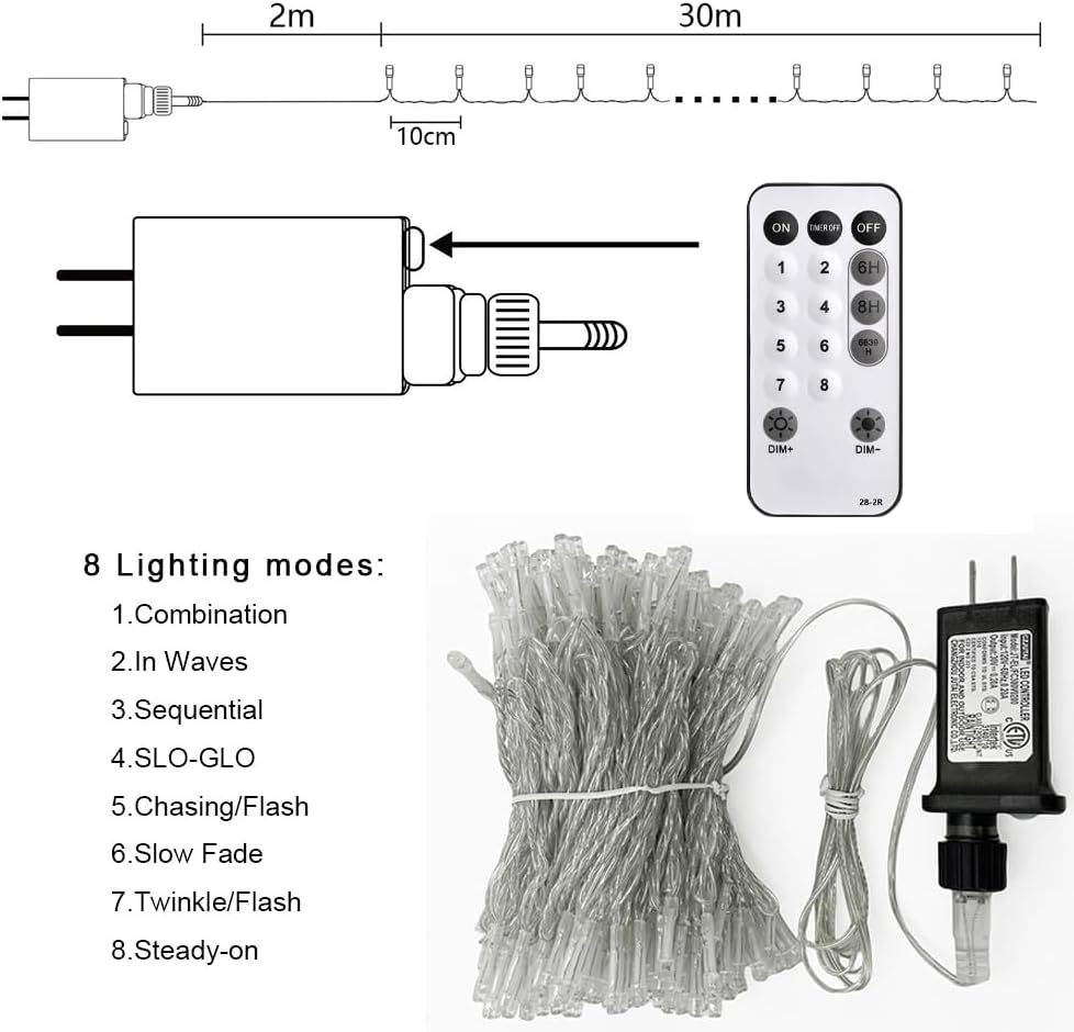 MEHOFOND 100ft 300 LED Christmas String Lights, 8 Lighting Modes Fariy LED String Lights, Timer Plug in Xmas Bday Wedding Party Decoration Outdoor Indoor Waterproof Holiday Garden Decor (Warm White)