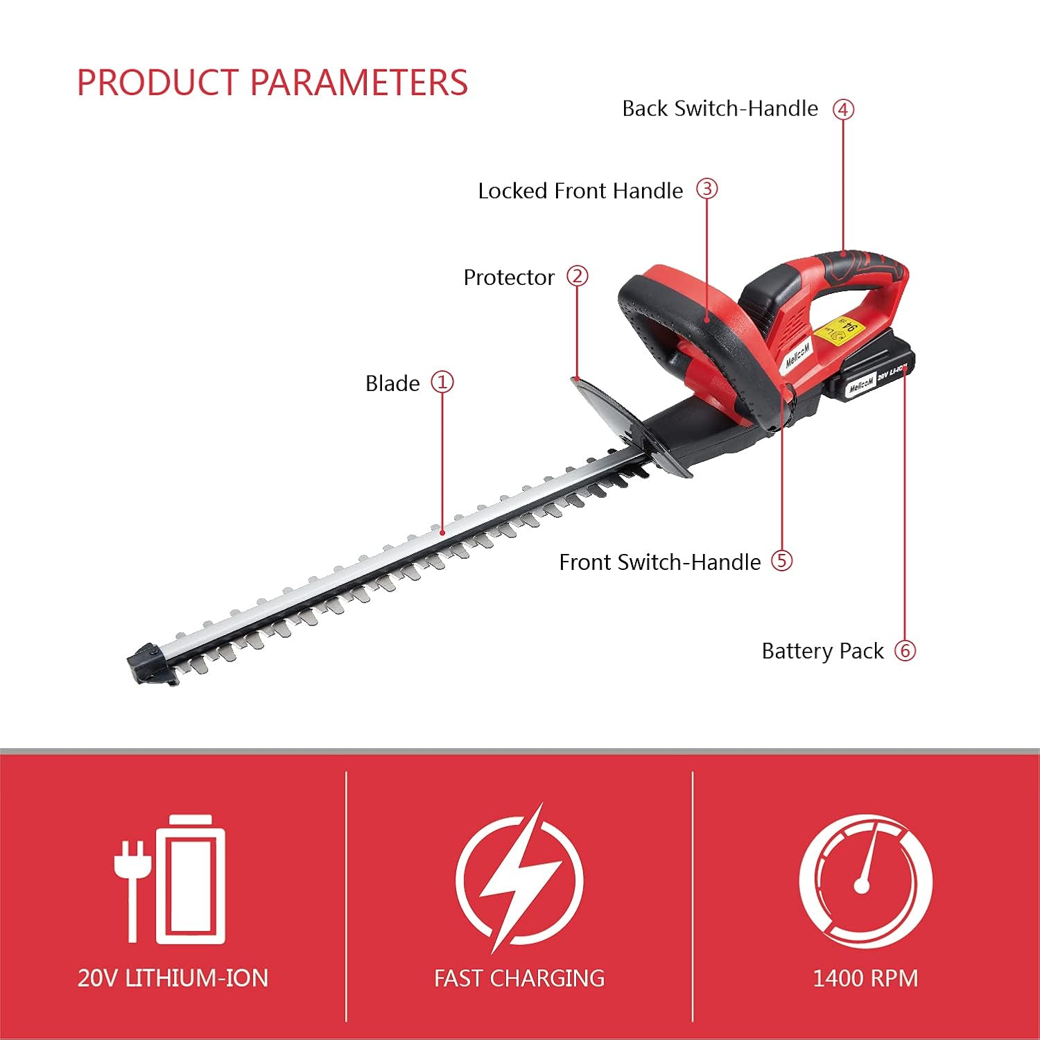MELLCOM Hedge Trimmer, 20" Cordless Hedge Trimmer With 20V Lithium Battery, 1400 PRM Output&5/8" Cutting Capacity Lightweight Electric Hedge Trimmer For Bushes Cutting(Battery&Charger Included)