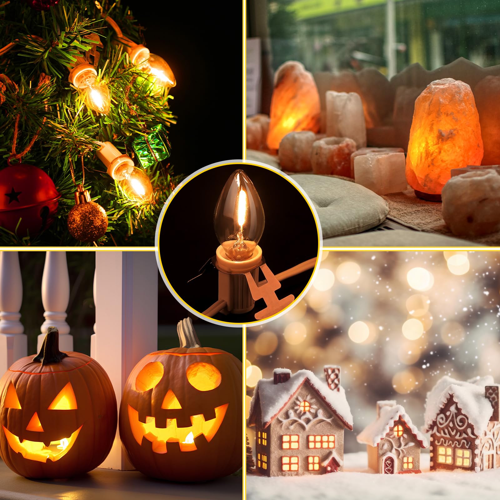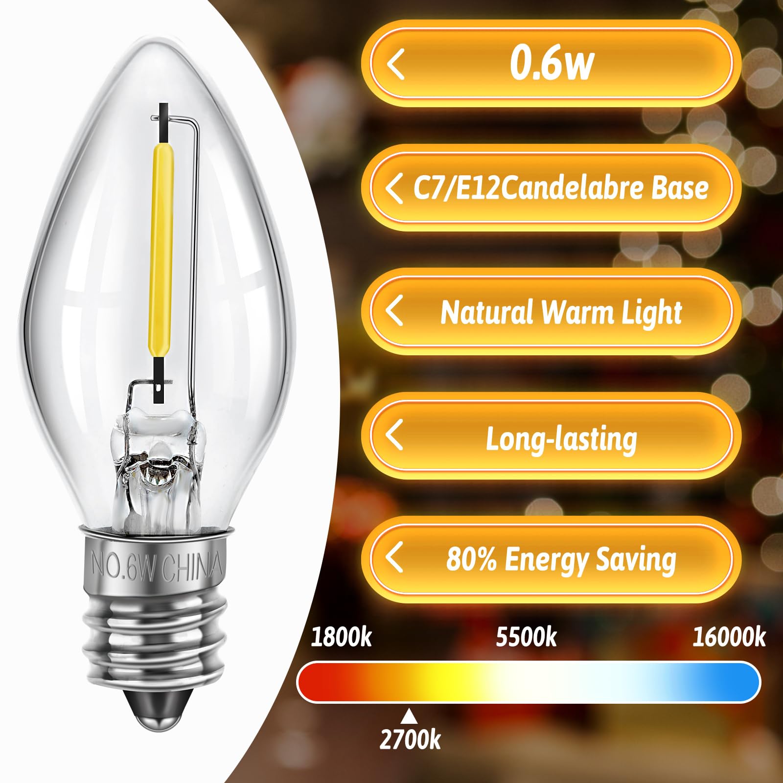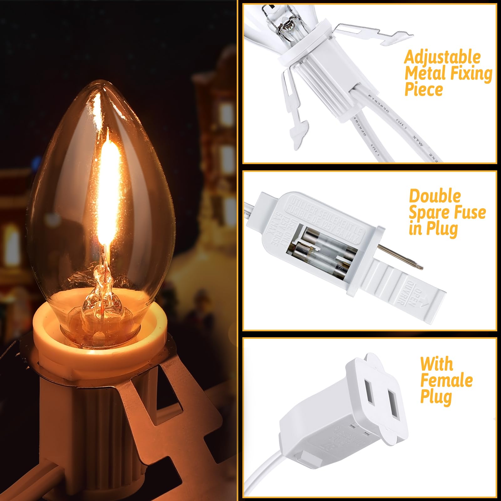 Meonum 1 Pack Christmas Village House Accessories Cord Light Bulbs, C7 Halloween Blow Mold Pumpkin Light with Switch Replacement Compatible with Dept 56 Christmas Holiday Craft Project Decor (12 LED)