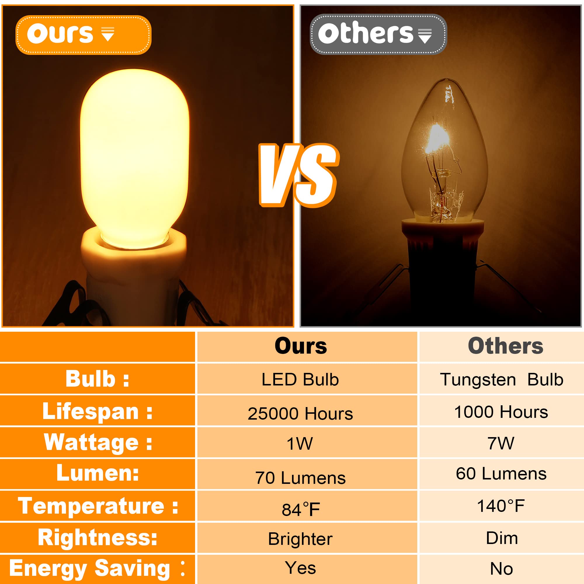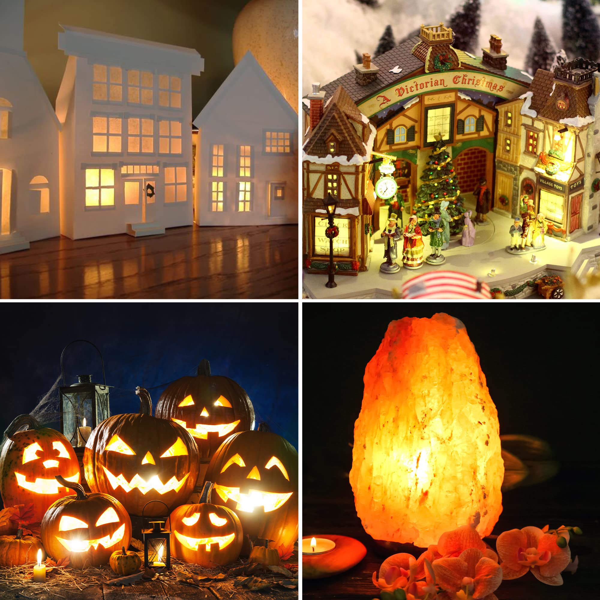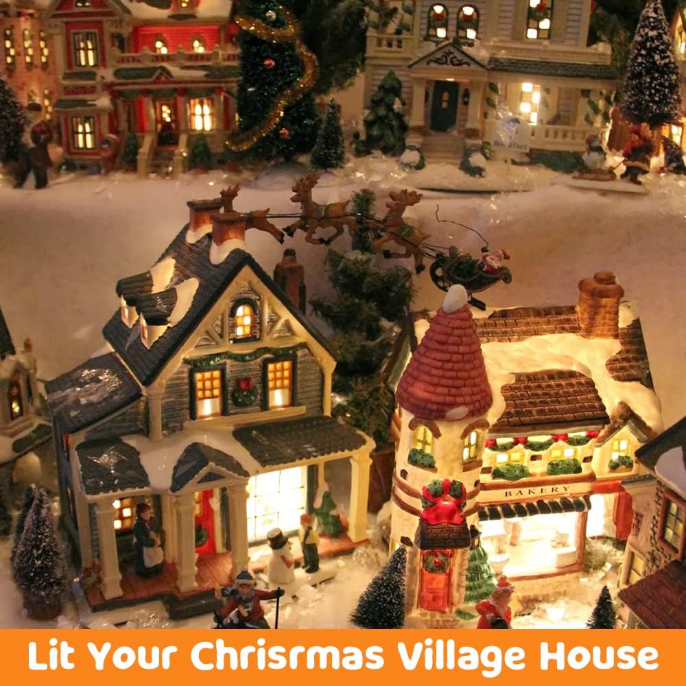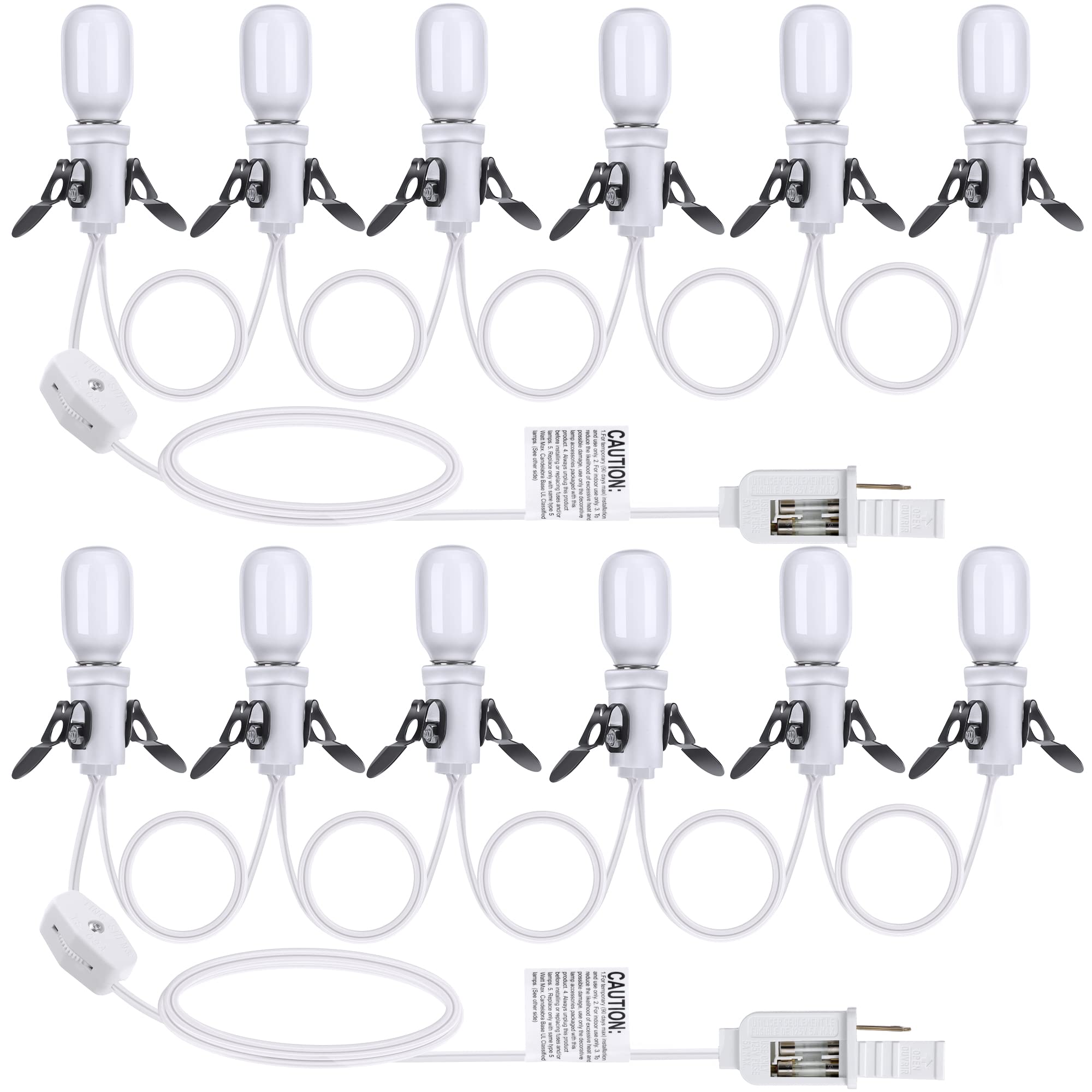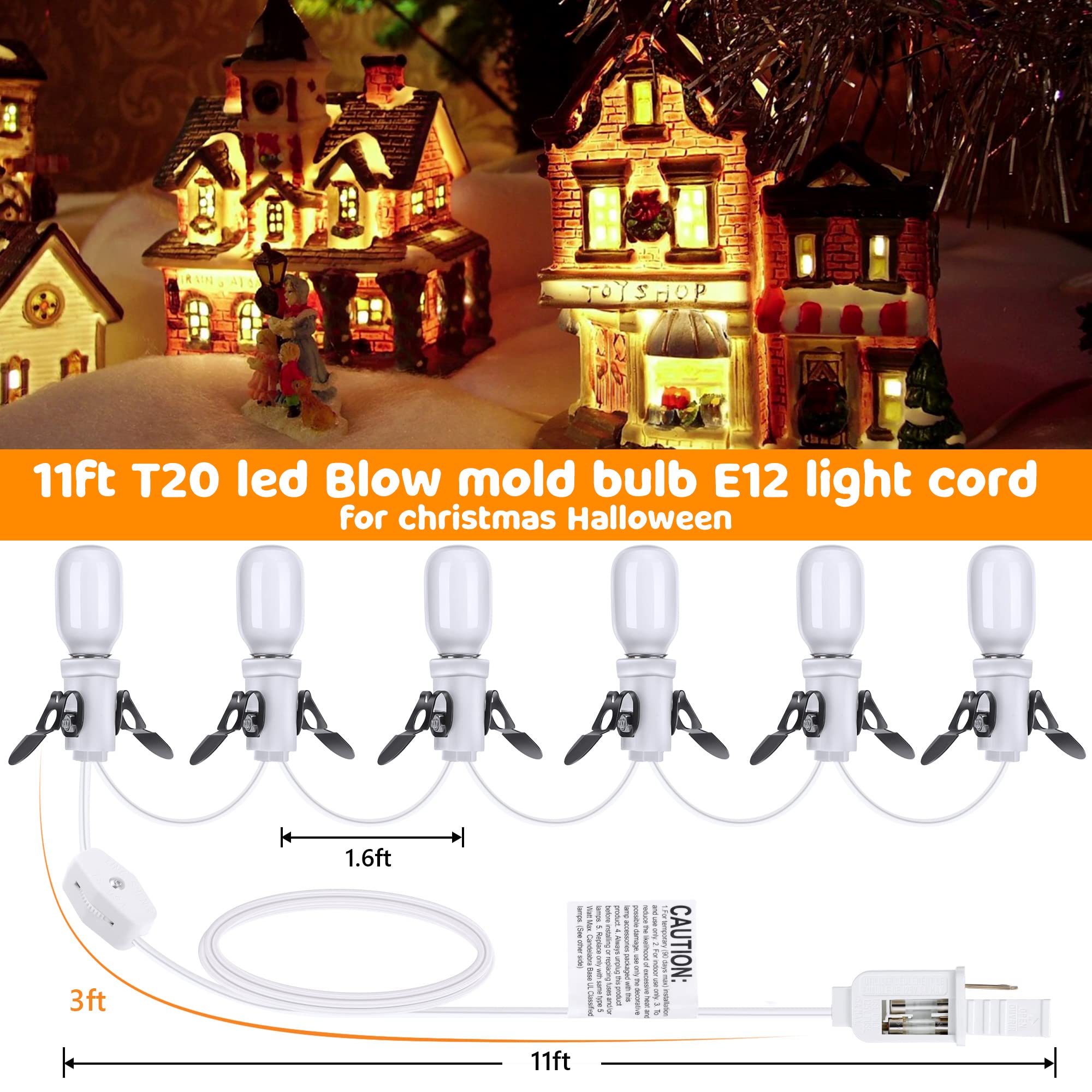 Meonum 2 Pack Accessory Cord with 6 LED T20 Bulbs, Indoor Blow Mold Light Warm White with Switch, E12 Christmas House Village Light with Fuse, Snow Village Light Replacement Cord for Holiday Decor