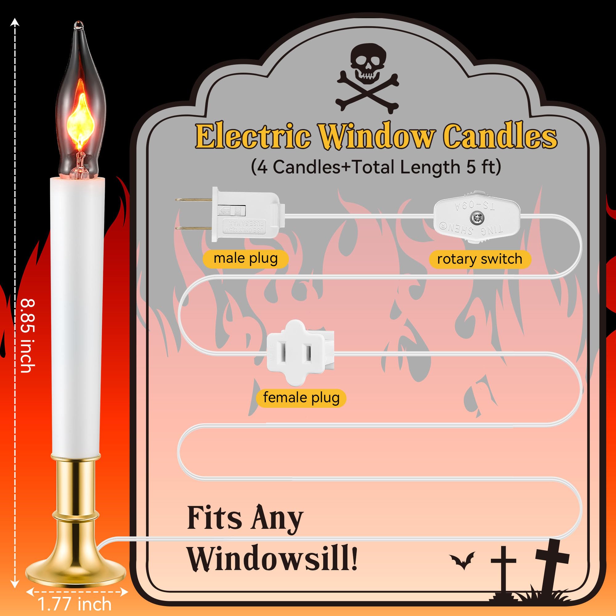 Meonum 4 Pcs Window Candles Kit Electric Christmas Window Candle, Flicker Flame Electric Window Candle Light with Gold Base, 5 Bulb and 5 Suction Cup Holder for Window Table Holiday Decor