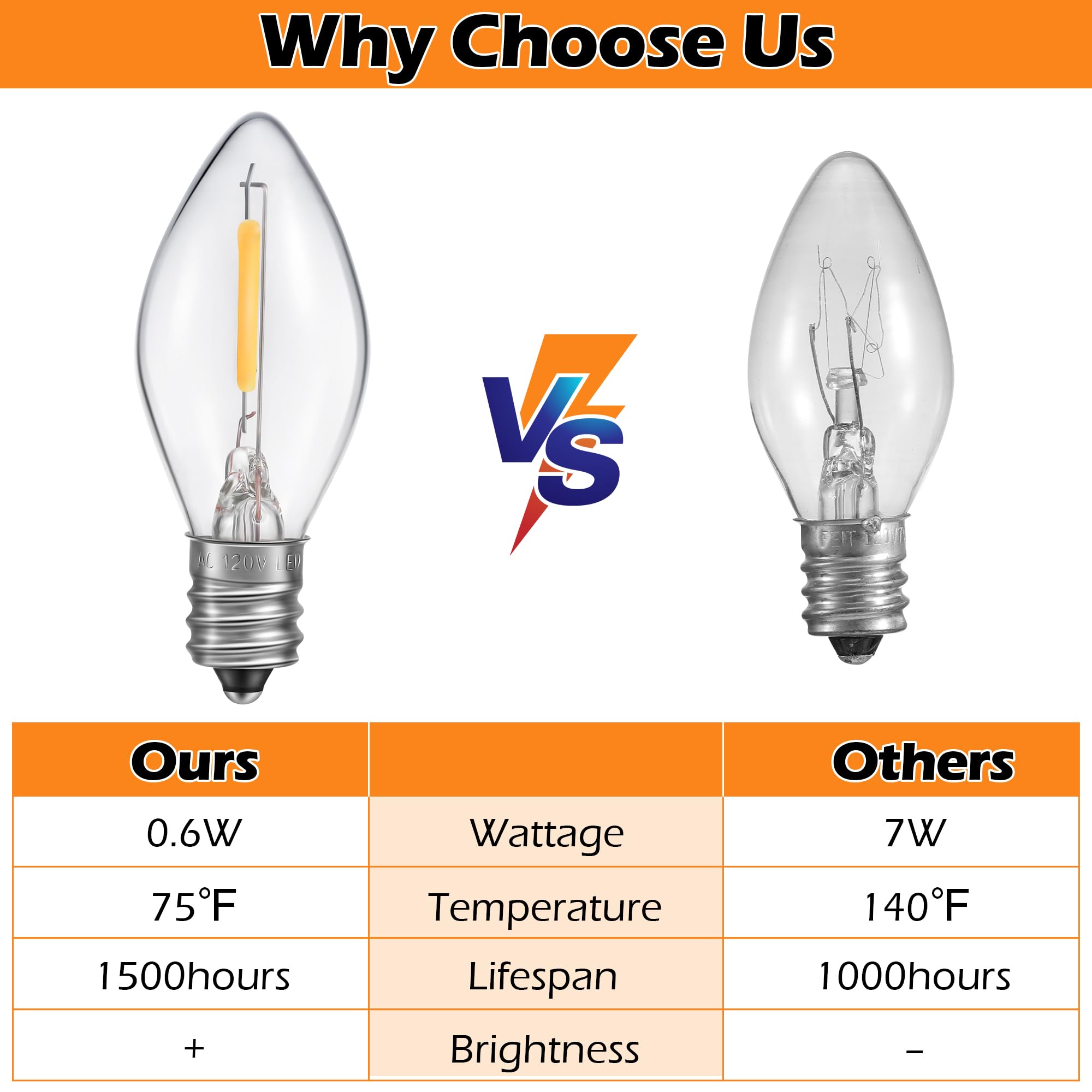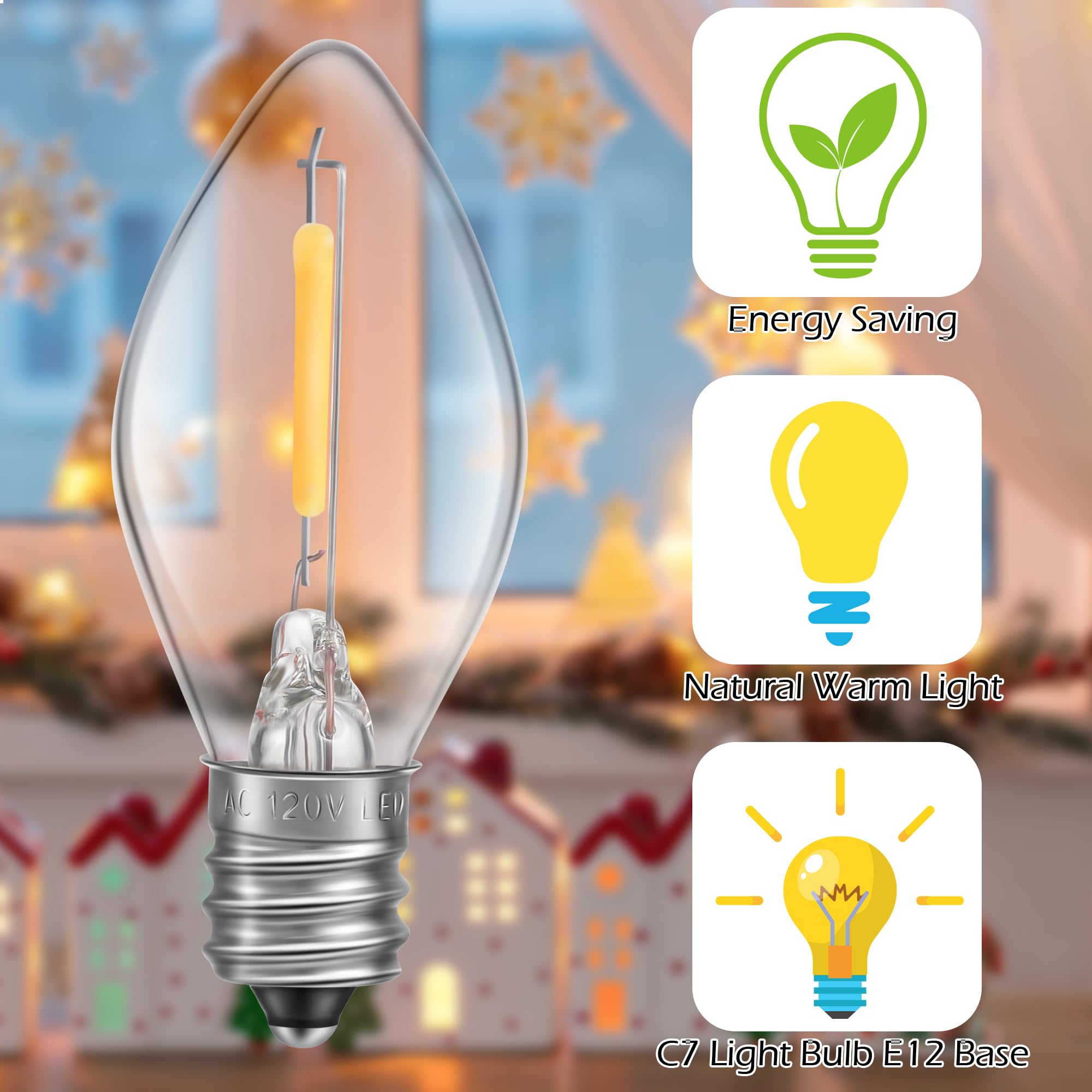 Meonum Accessory Cord with 9 LED Light Bulb, 16.4Ft C7 Christmas Village Lights Cord with Clip, Blow Mold Lights for Halloween Christmas Village Houses, Pumpkin Skeleton Holiday Decoration (Black)