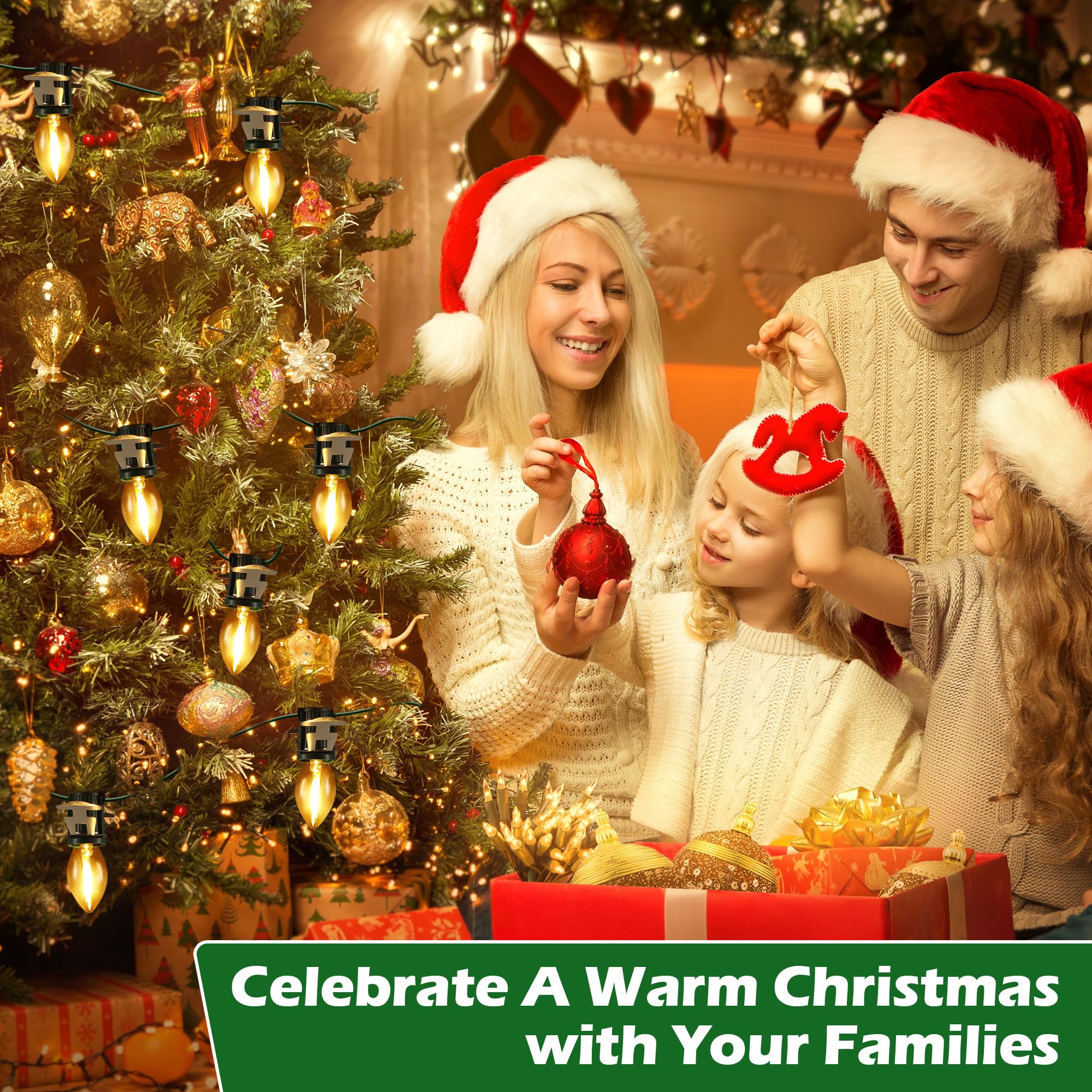 Meonum Accessory Cord with 9 LED Light Bulb, 16.4Ft C7 Christmas Village Lights Cord with Clip, Blow Mold Lights for Halloween Christmas Village Houses, Pumpkin Skeleton Holiday Decoration, Green