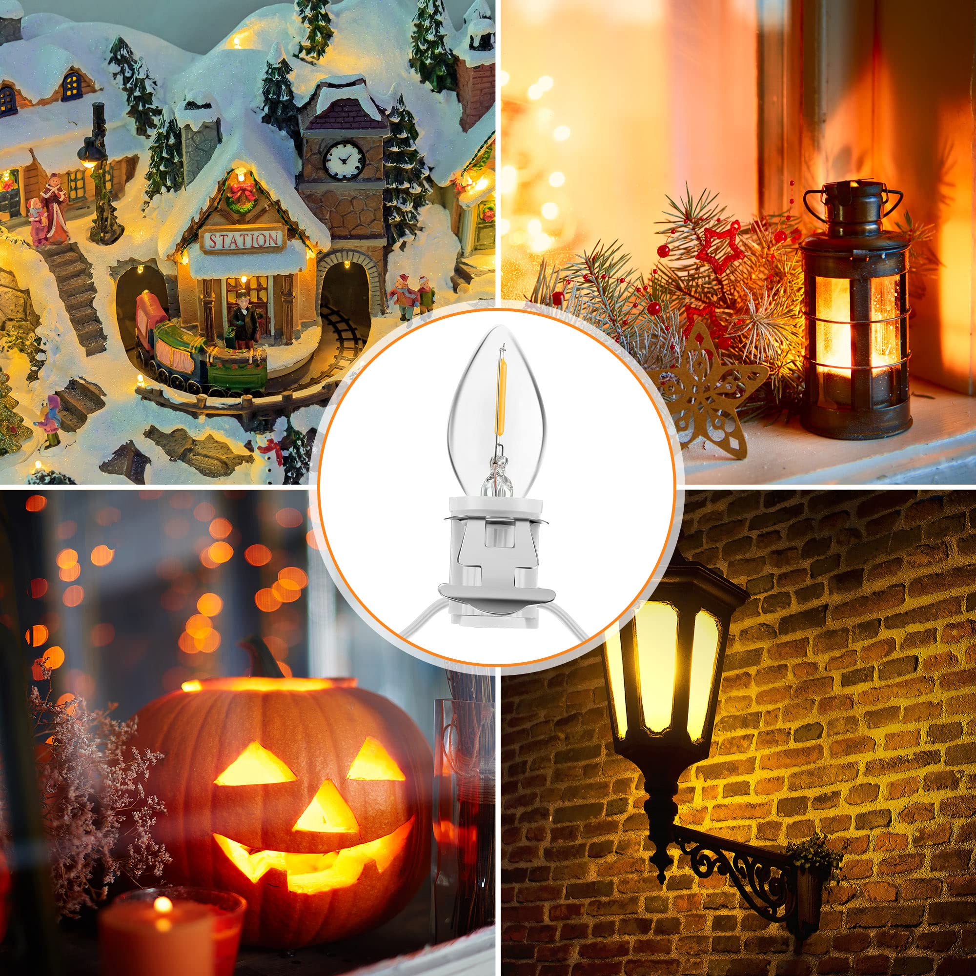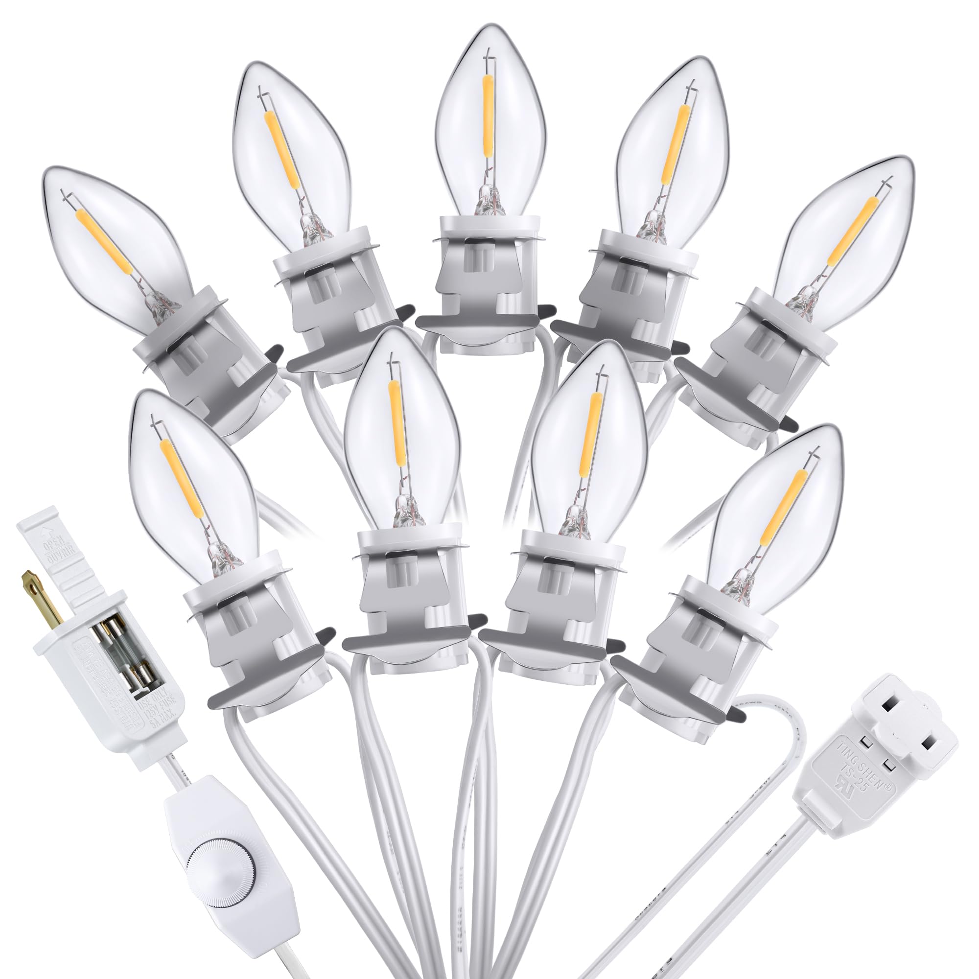 Meonum Accessory Cord with 9 LED Light Bulb, 18ft Christmas Village Lights Cord with Dimmer Switch, C7 Blow Mold Lights for Christmas Village Houses, Halloween Pumpkin Holiday Crafts Decoration, White