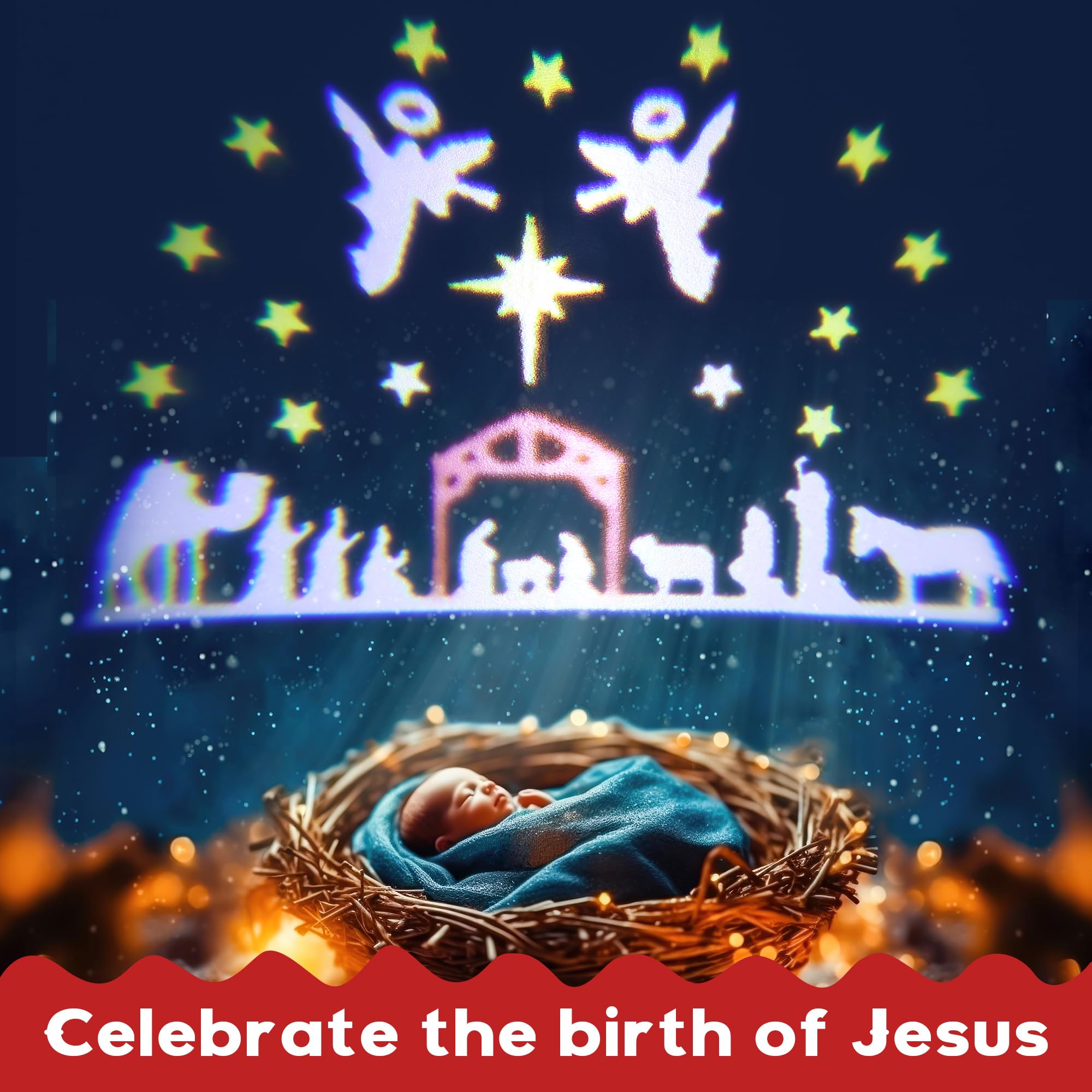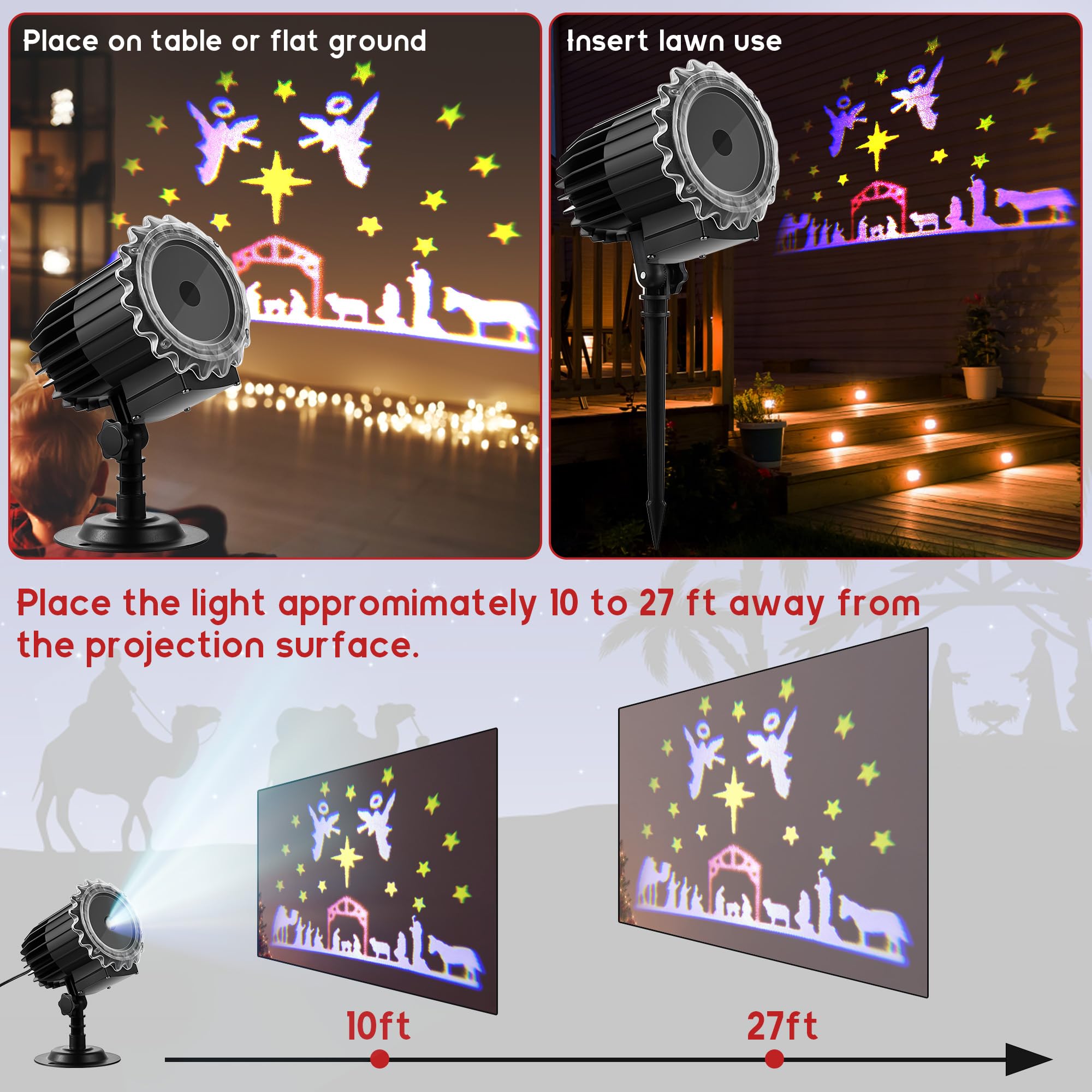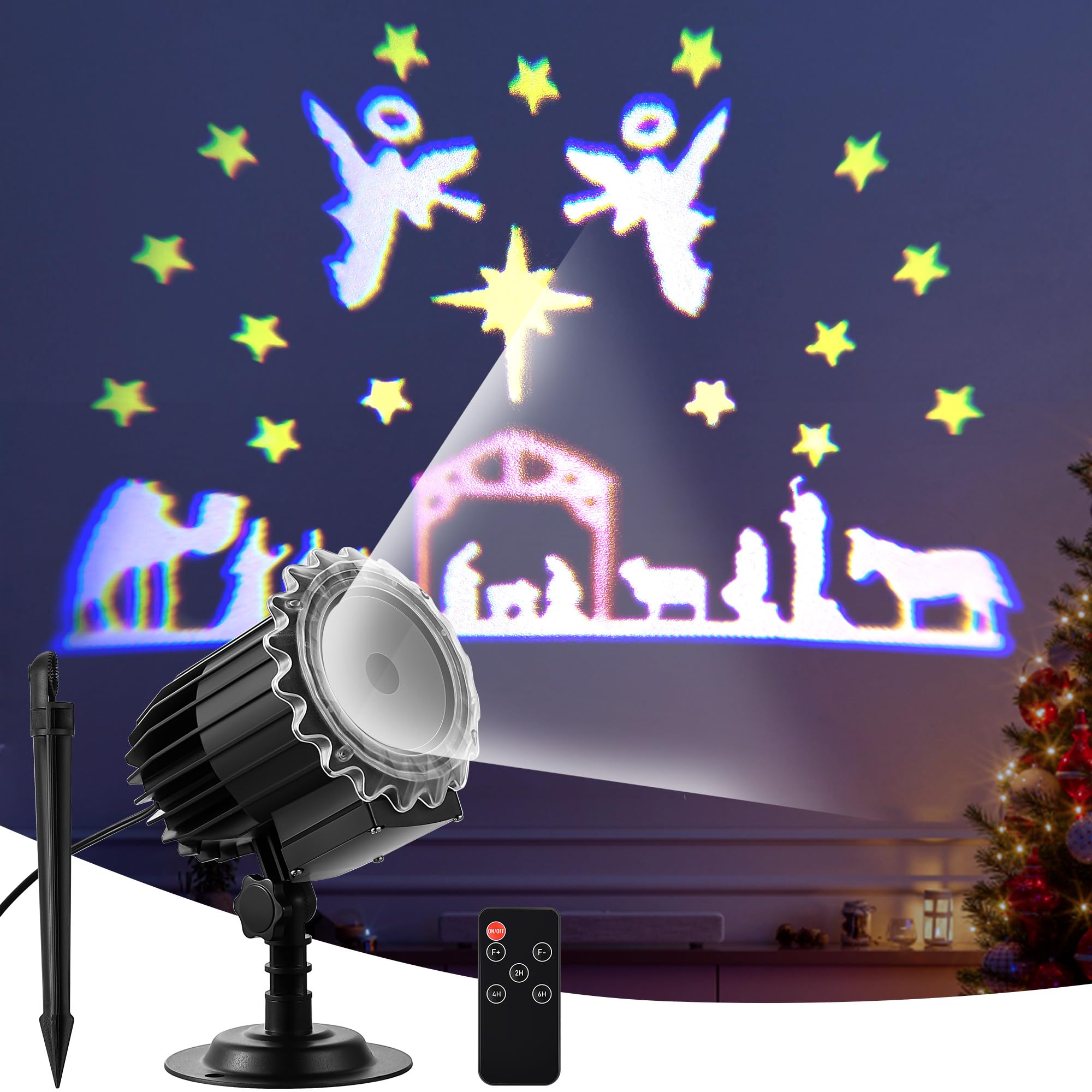 Meonum Christmas Nativity Silhouette Scene Projector Lights Outdoor, Waterproof Nativity Silhouette Light Power Supply with Remote Control Scene onto Outdoor Indoor Wall Windows Garage Doors