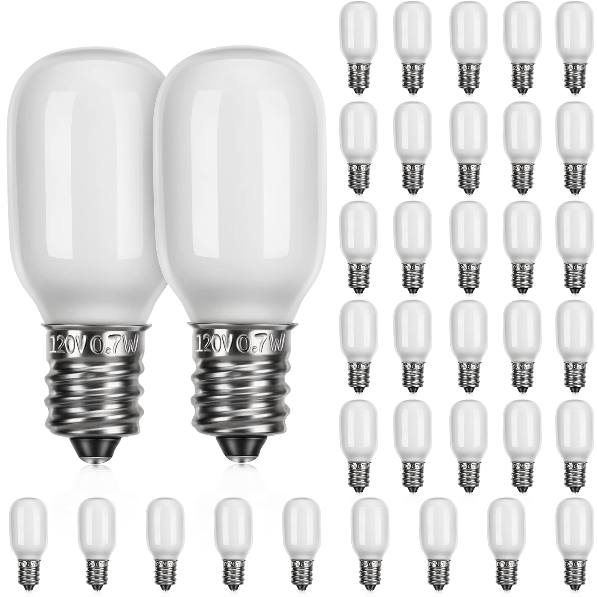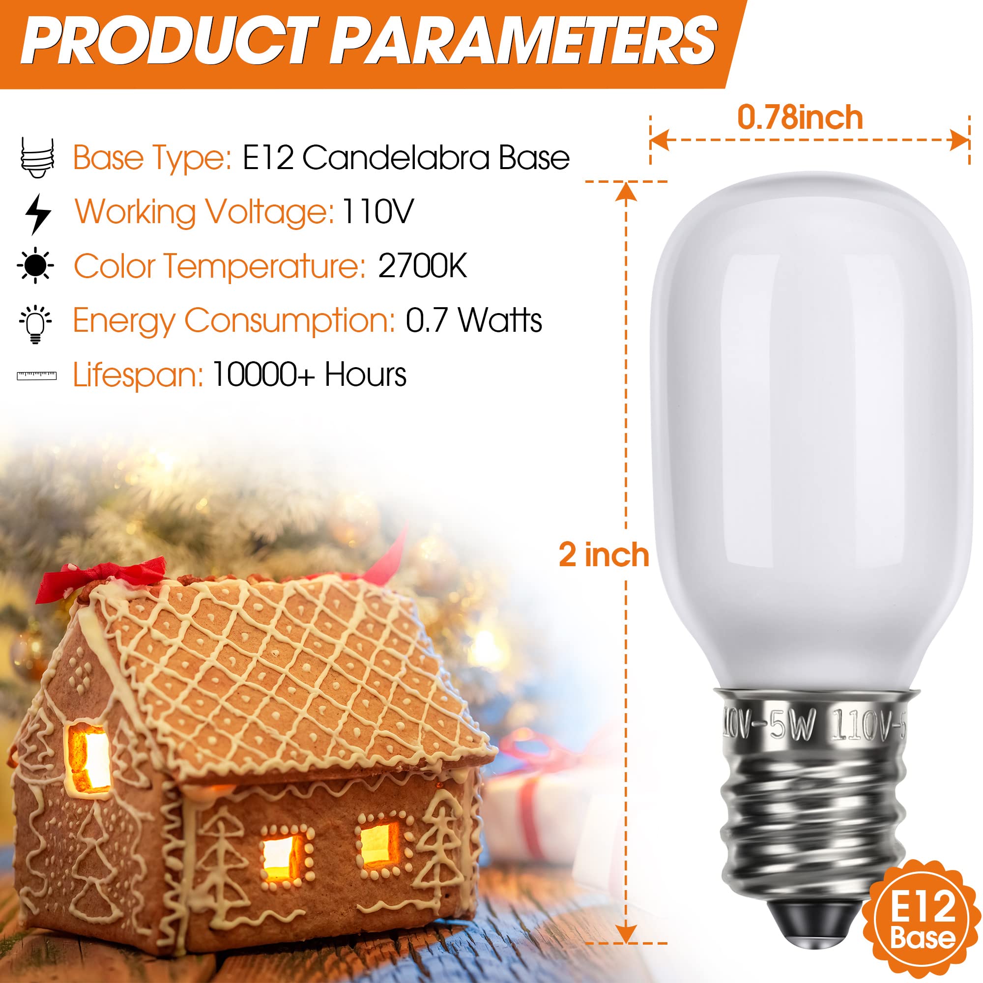 Meonum Christmas Village Replacement Light Bulbs, E12 Candelabra Base T20 LED Bulbs, 0.7W 120V Replacement Bulbs Accessories for Villages Houses Dept 56, Christmas Tree, Halloween Pumpkin (36 Pieces)