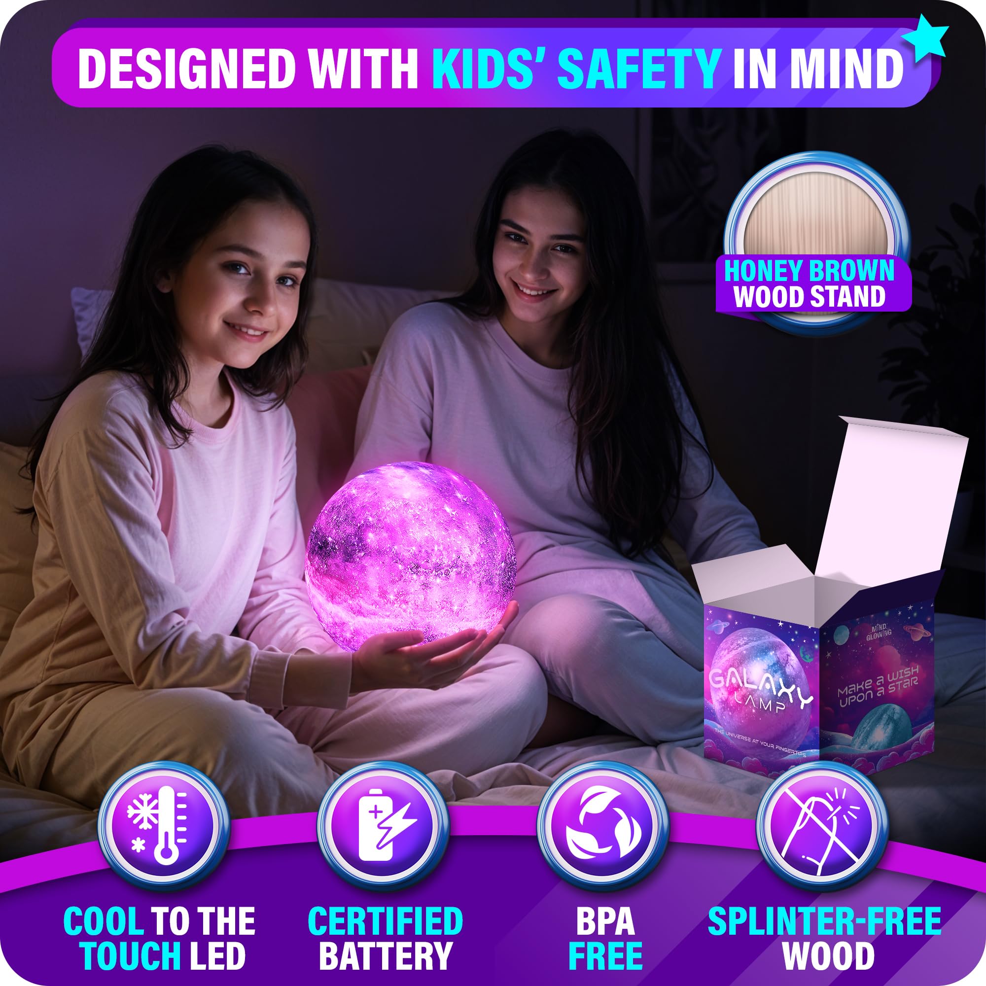 Mind-Glowing Galaxy Moon Lamp with 16 Colors, Touch/Remote, Wood Stand - Teen Girls Trendy Stuff - Christmas for 6 7 8 9 10 11 12 Year Old Teenage Girl - Cool Night Light for Kids (8.0 inch)