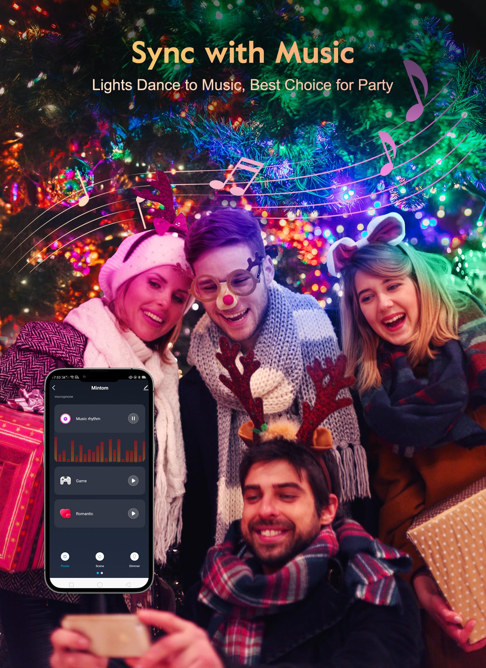 16 Million Colors & Multiple Modes: Experience a vast spectrum of colors with Minetom smart lights, offering normal single colors, special bi-colors, classic tri-colors, and multi-color options for year-round lighting decor. Choose from multicolor, red & green, red white & green, green & white, blue & white for Christmas red white blue for July 4th orange, purple, orange & purple for Halloween/Thanksgiving green for St. Patrick's Day and red/pink for Valentine's Day. Easily Control Your Lights - from anywhere: Take complete control of brightness, color, and multiple lights across rooms or zones with your smartphone using the app (available for iOS and Android). Dim, turn on/off, or change colors and scenes remotely, all at your fingertips. (Note: 5G WiFi is not supported.)