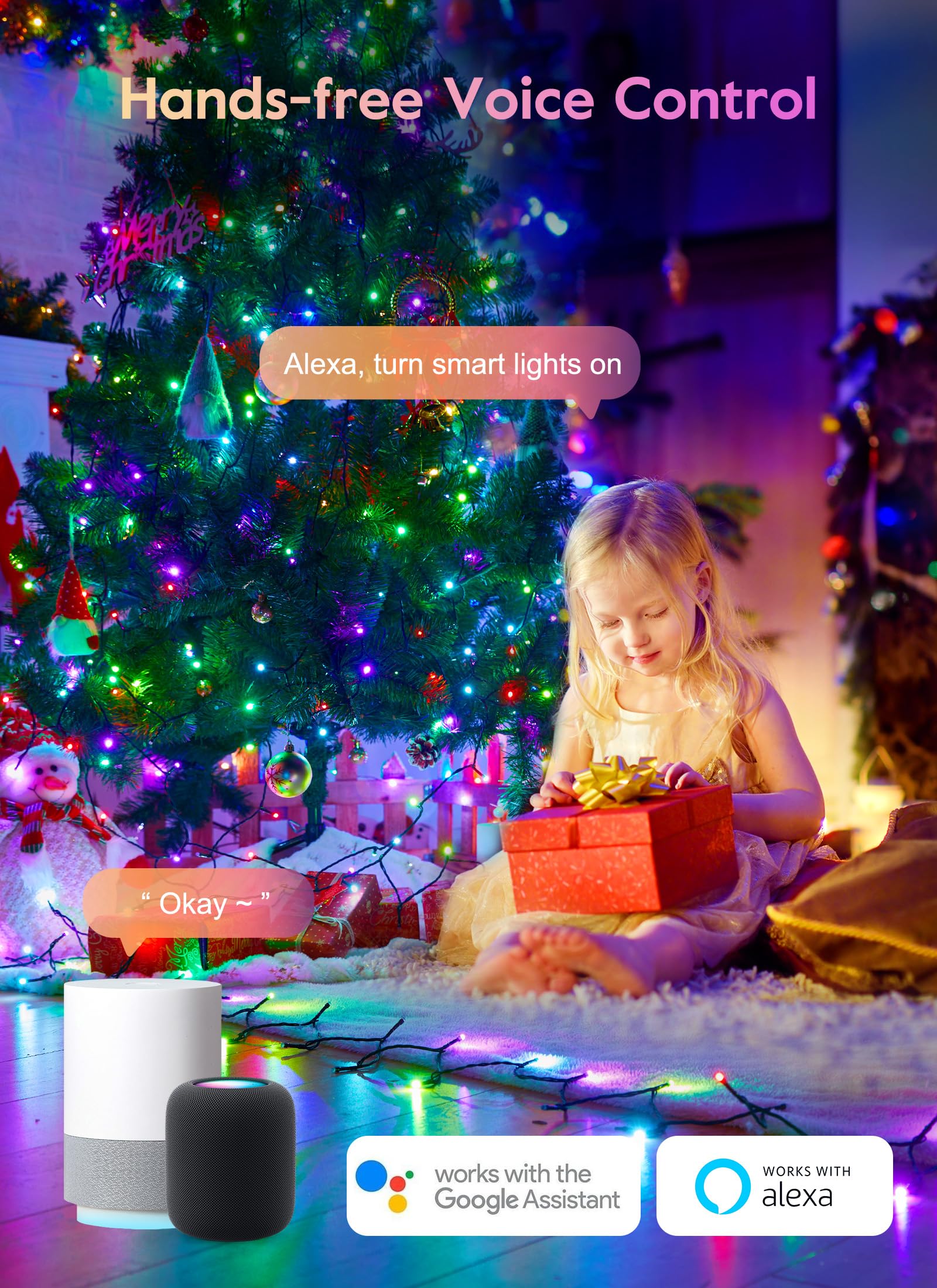 • Hands- Voice Control: Seamlessly integrate with Alexa or Google Assistant to control your smart lights using voice commands. Simply instruct your voice assistant to turn lights on/off, adjust brightness, or even change colors, without lifting a finger.