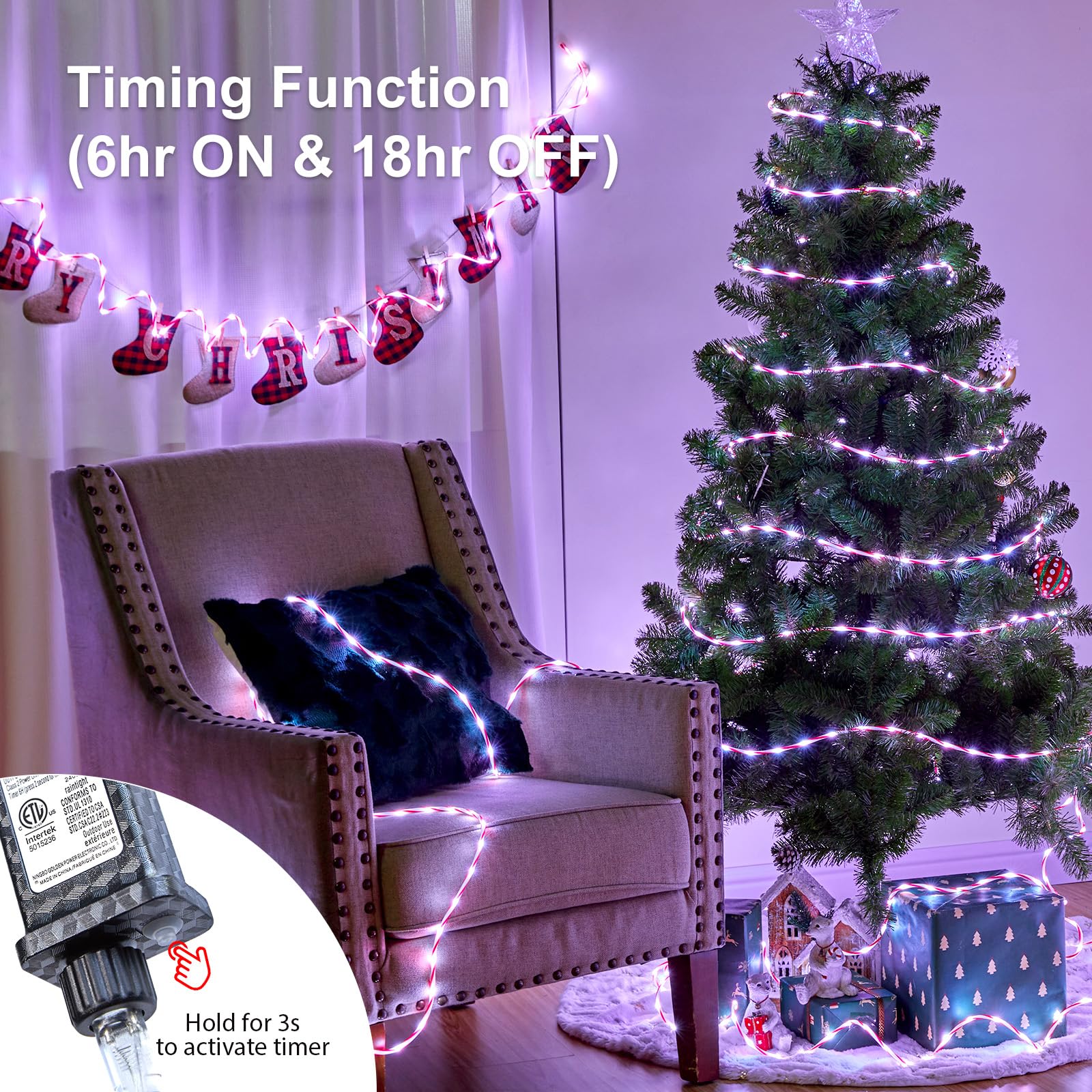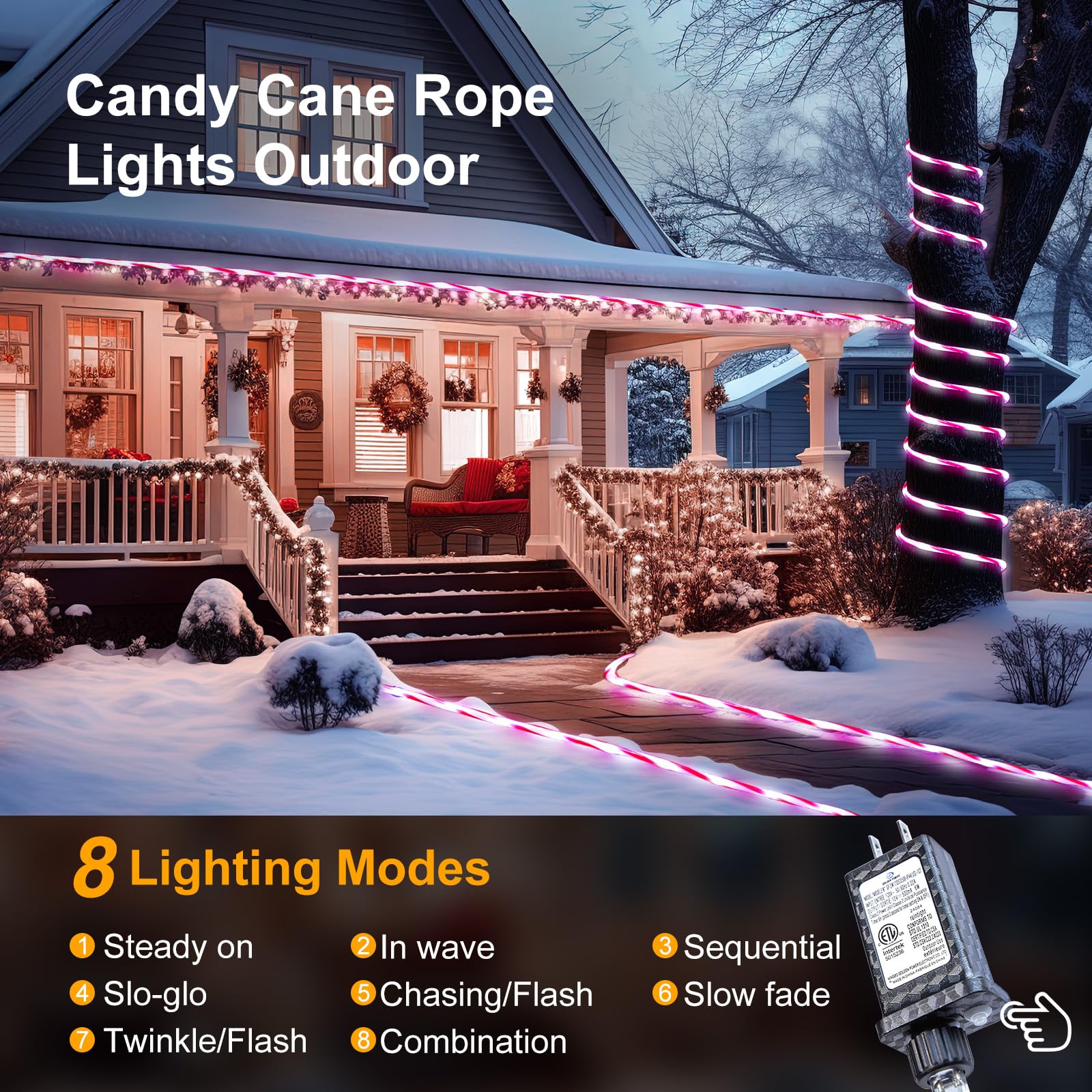 Minetom Christmas Lights Outdoor, 66 FT 400 LED Candy Canes Rope Lights Outdoor with 8 Lighting Modes, Waterproof Christmas Lights Outdoor Decoration, Rope Lights for Outside Indoor Tree, Pure White