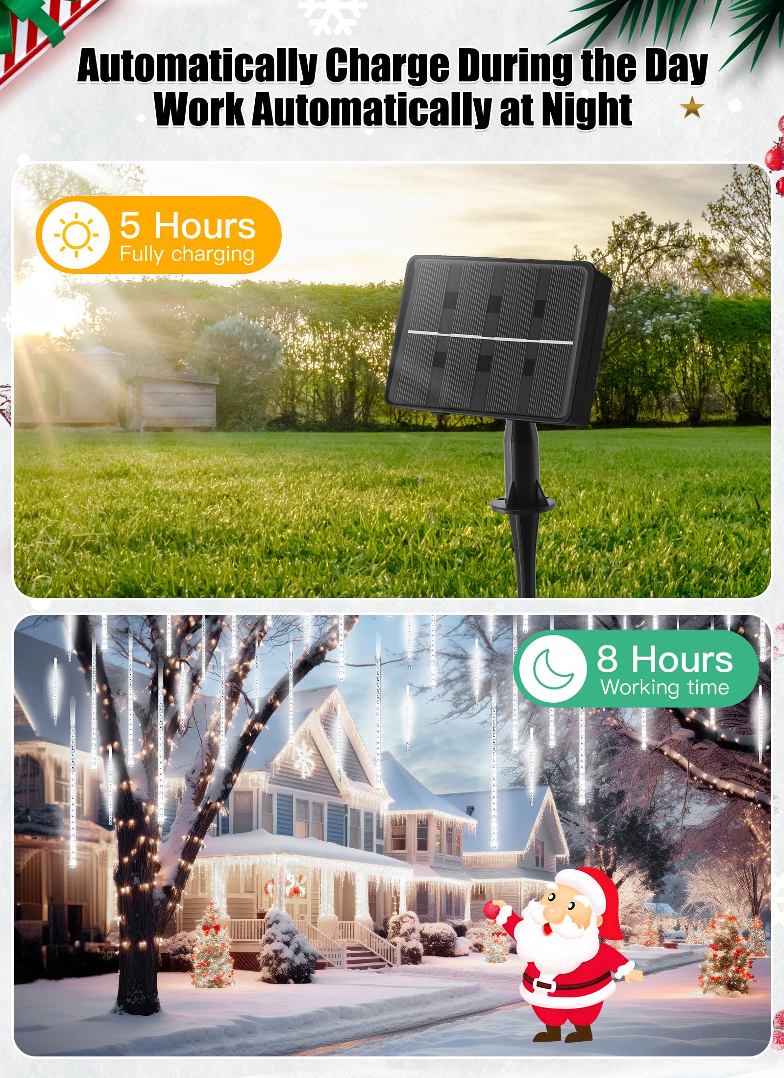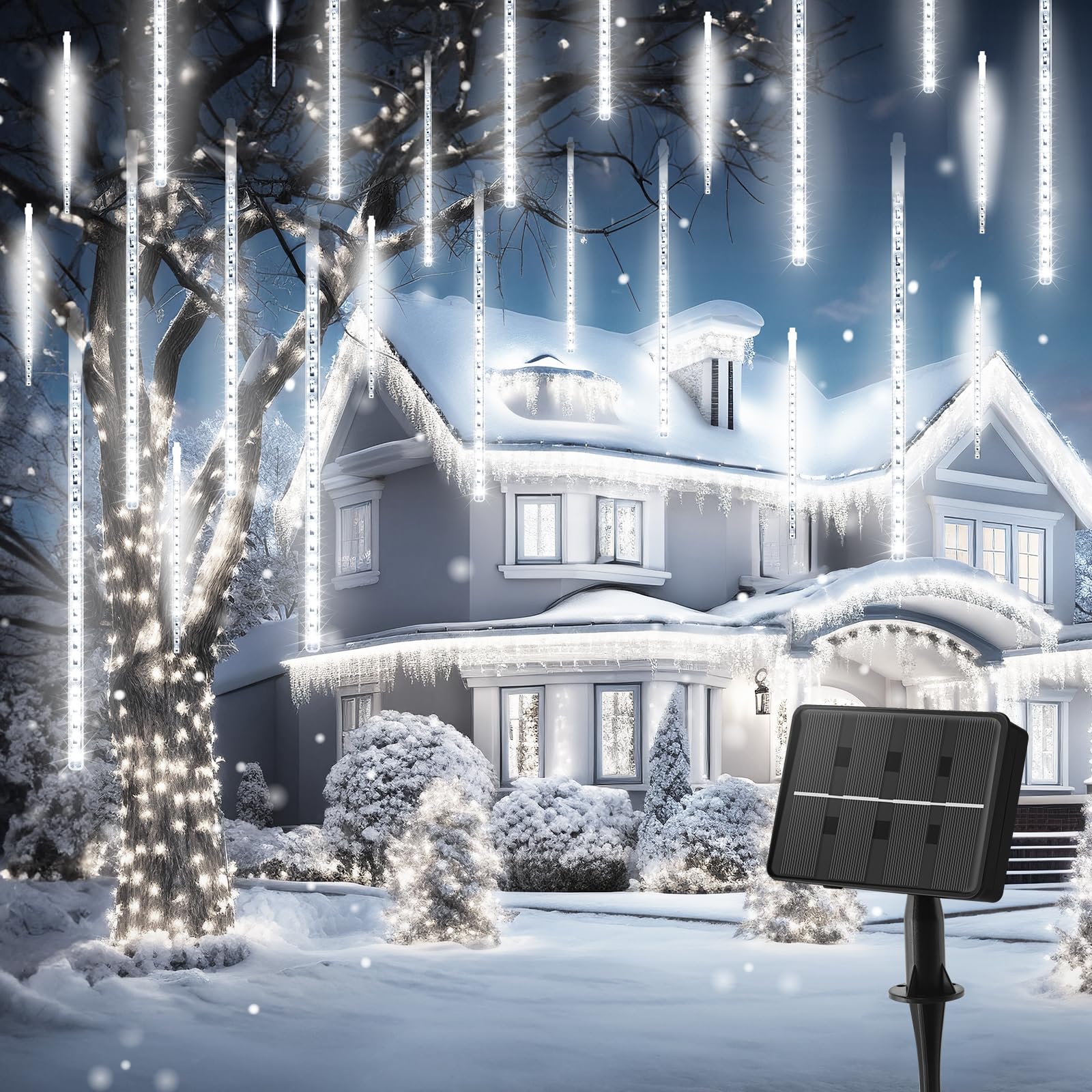 Minetom Solar Meteor Shower Icicle Lights,20 Tubes 480 LED Solar Christmas Lights Outdoor Waterproof, Cascading Lights Falling Rain Lights for Holiday Party Wedding Christmas Decorations, Pure White