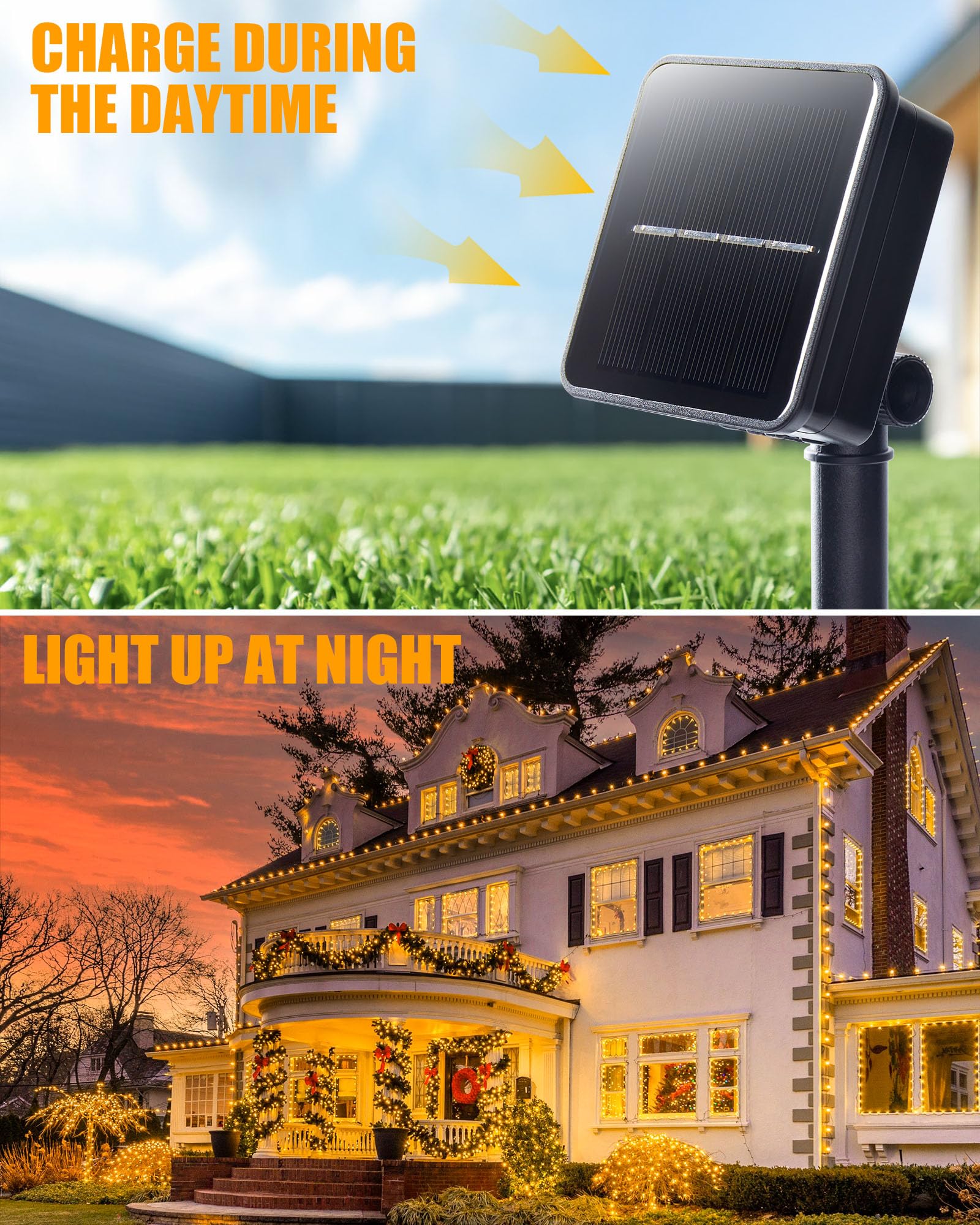Minetom Solar String Lights for Outside, 33Ft 100 LED Outdoor Solar Fairy Lights, 8 Modes Balcony Lights for Tree Patio Christmas Party Wedding Decor (Warm White)