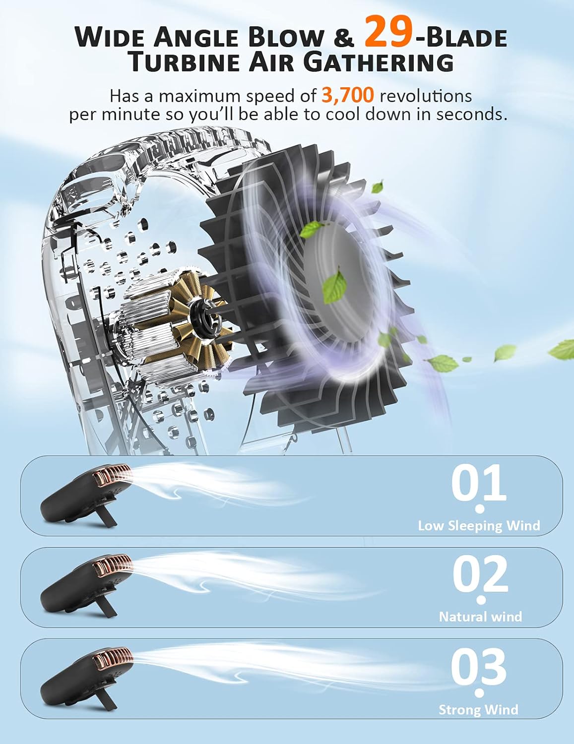 Mini Fan Mini Handheld Fan Portable Fans Usb Rechargeable, Personal Desk Fan Multifunctional With Strong Airflow, Led Smart Displ