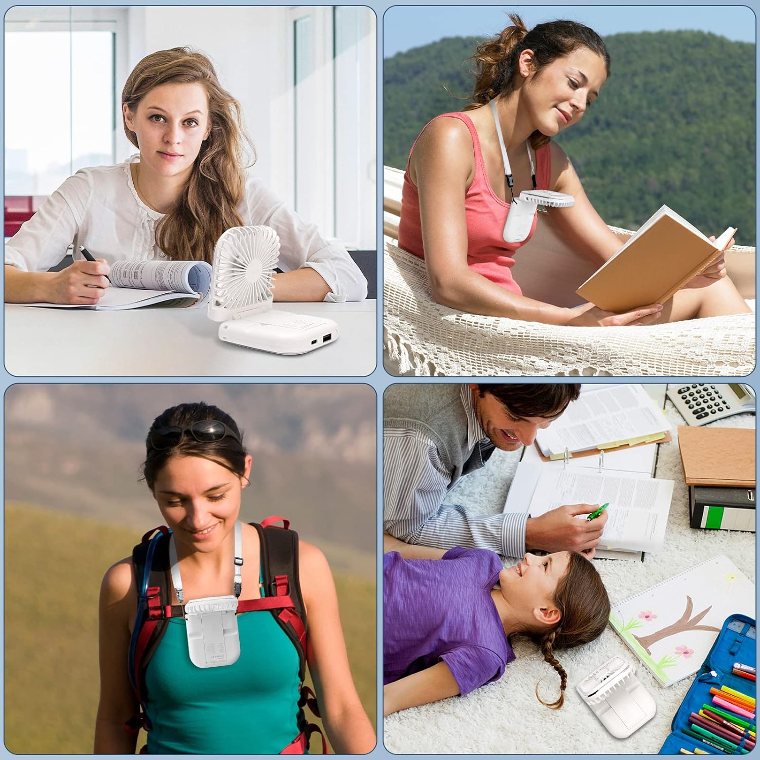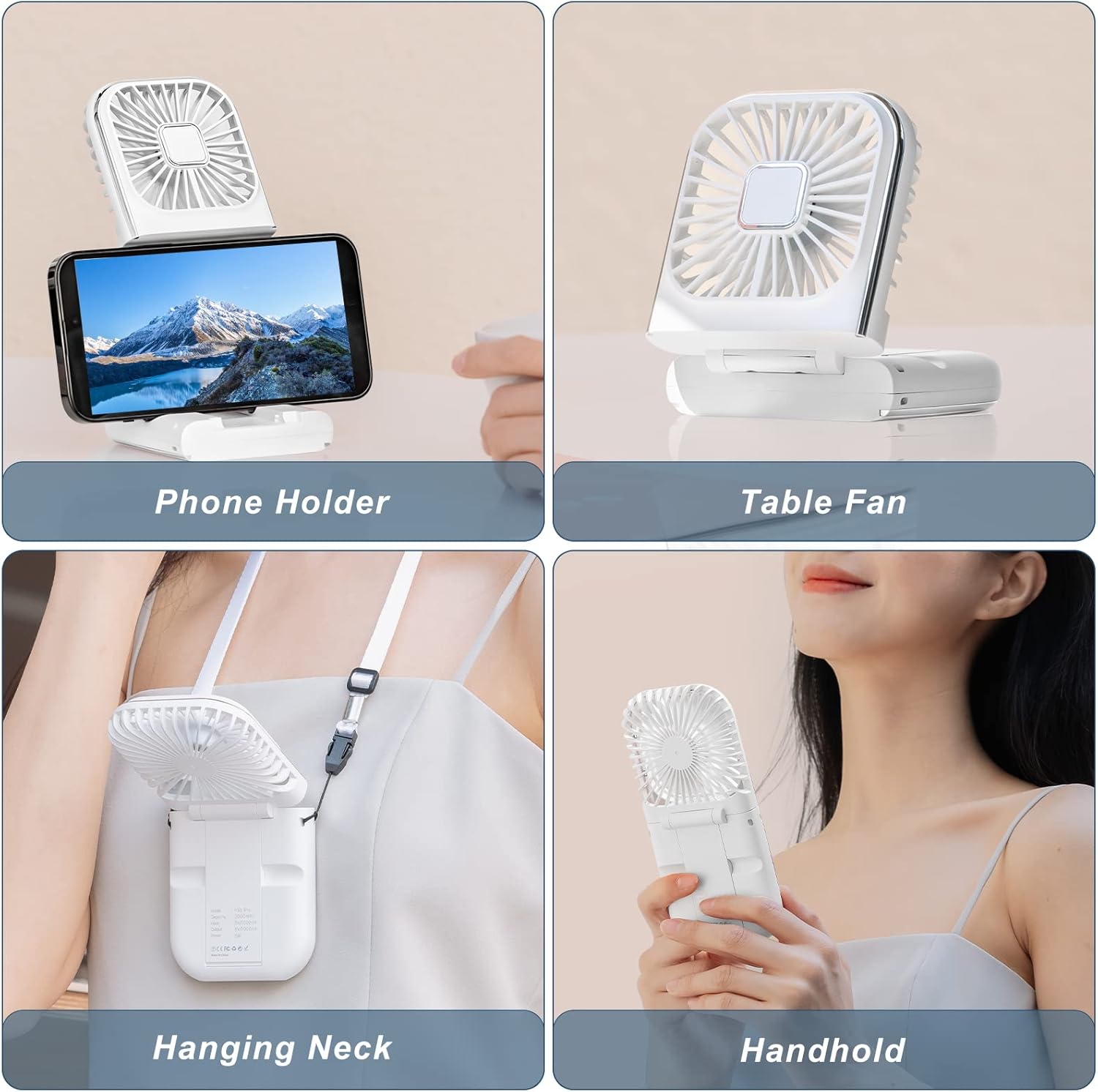 Mini Fan Portable,Handheld Fan Foldable,5 In 1 Neck Fan,Hand Fan,Desk Fan,3000 Mah Power Bank,Phone Holder,Usb Rechargeable