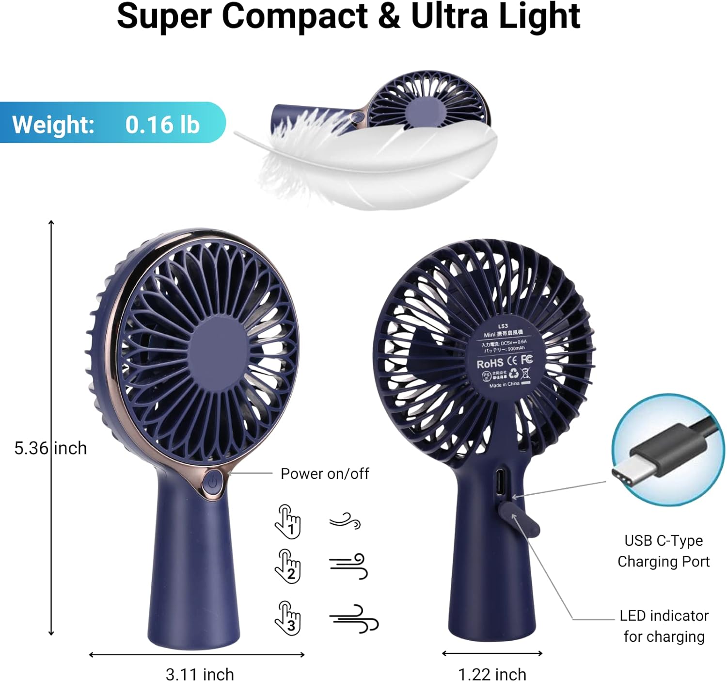 Mini Fan Portable, Personal Handheld Fan Hand Fan, 6 Hours Useage, 3 Speed Mini Desk Fan For Office Travel Camping For Kids