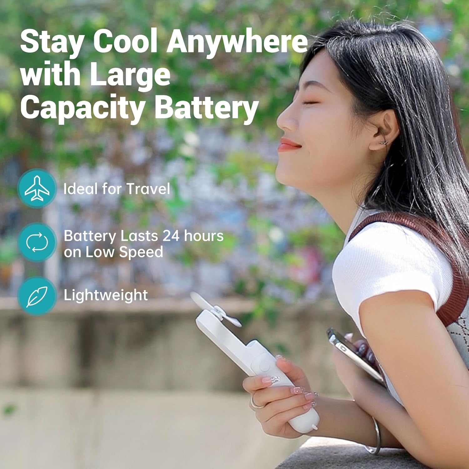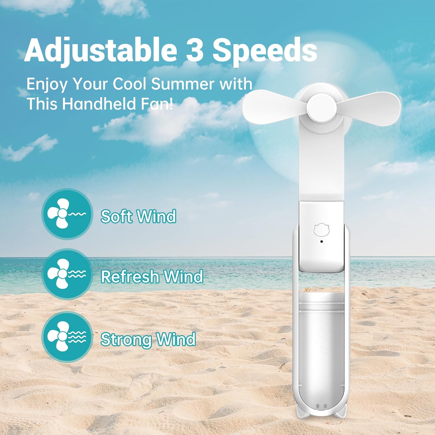 Mini Handheld Fan,3000Mah Small Battery Operated Fan,Portable Quiet Fan,Usb Rechargeable Pocket Fan,3 In 1 Hand Fan With Power