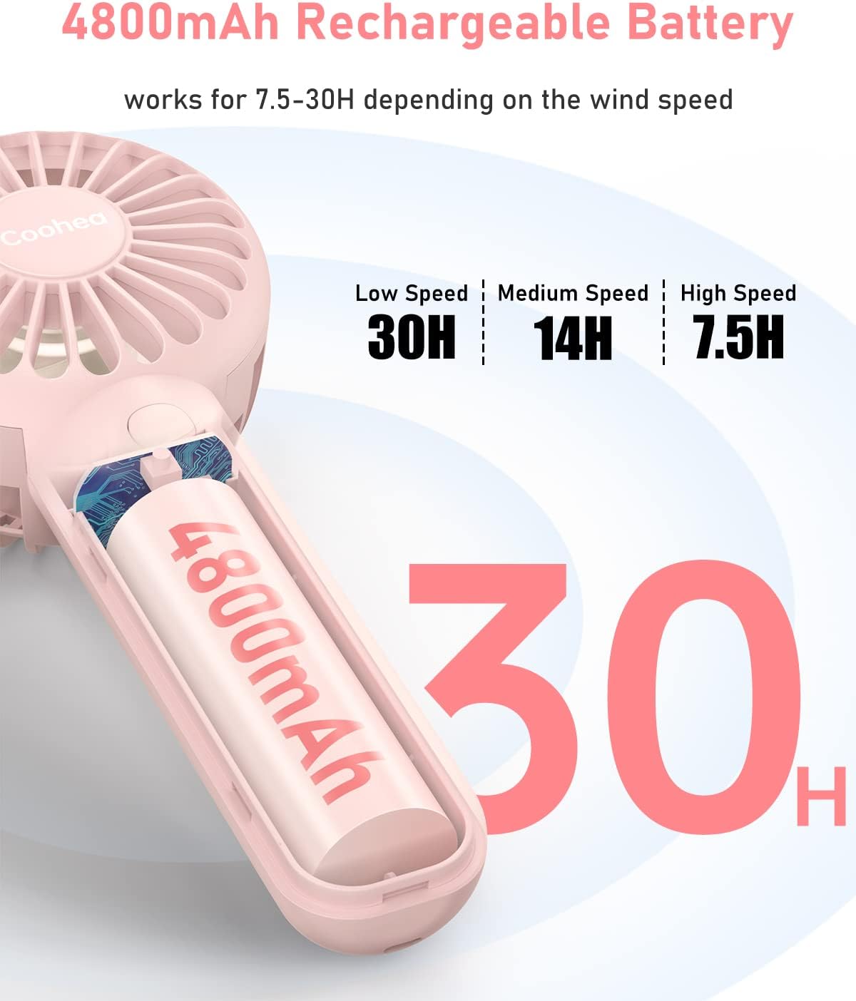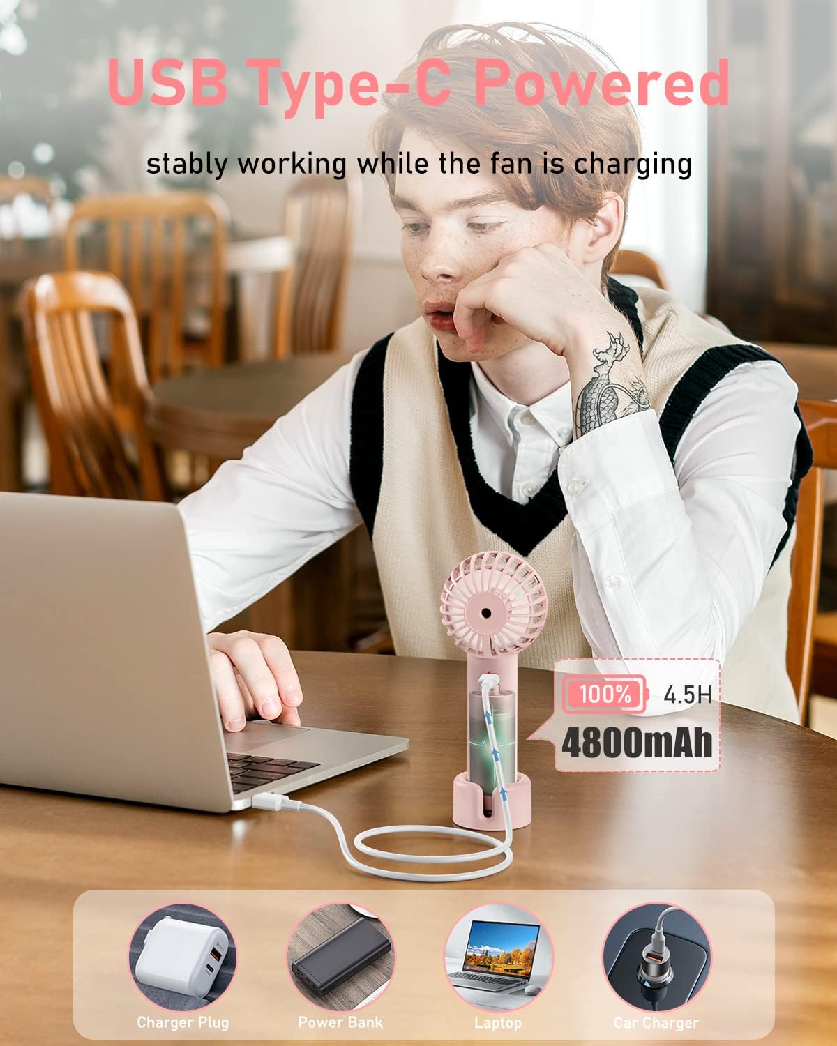 Mini Handheld Fan 4800Mah Battery Portable Fan Usb Rechargeable Eyelash Fan 3 Speeds Wind Powerful Makeup Fan Cute Small Fan