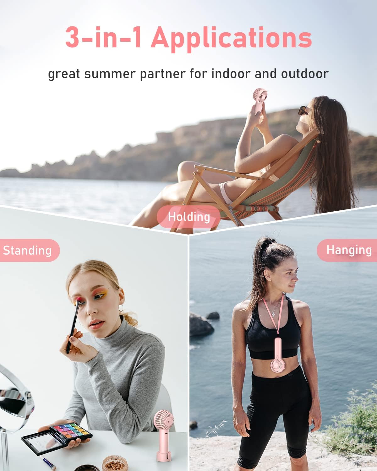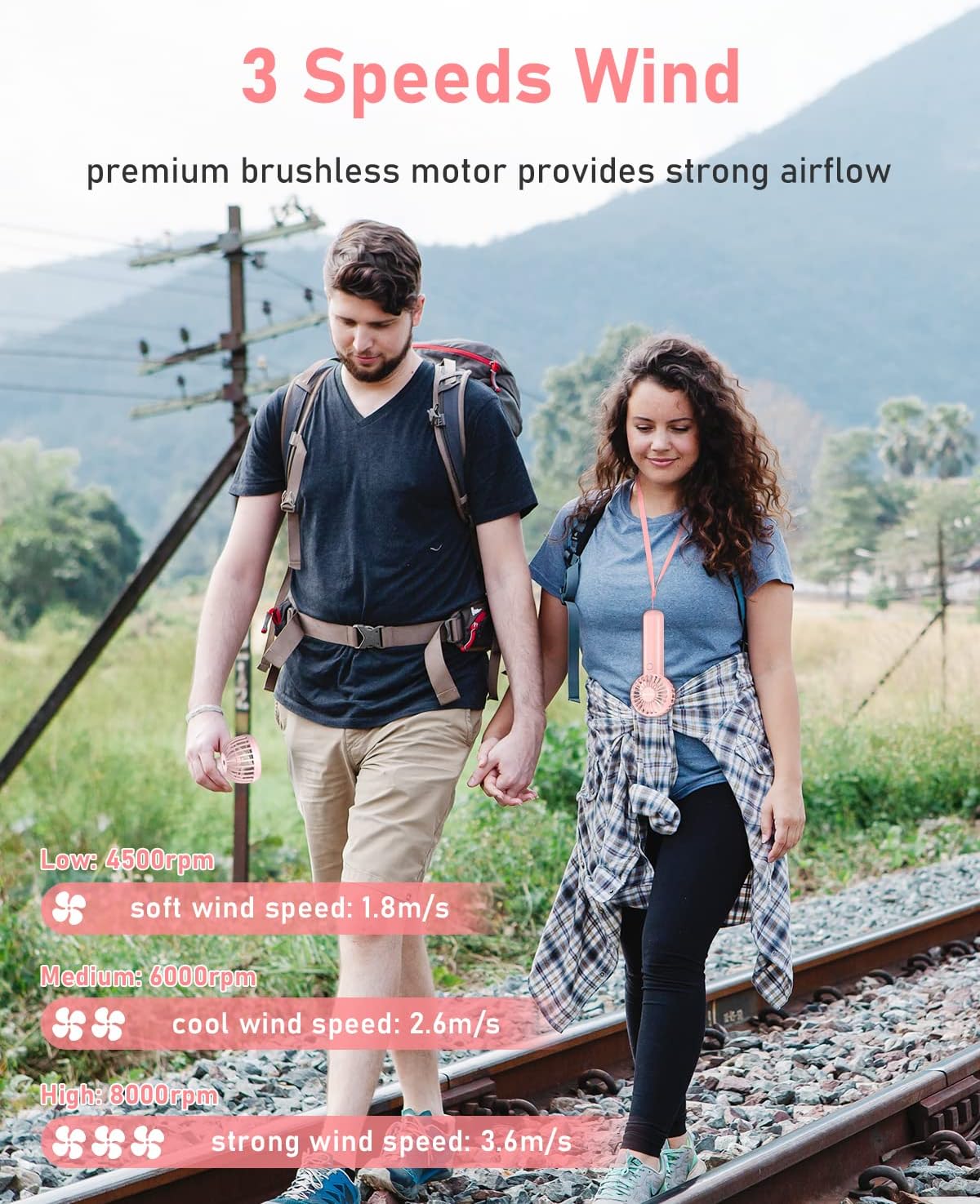 • 💗【3 Settings Strong Wind】💗The portable fan adopts premium brushless motor, supporting the blade running at very high speed to produce strong wind. Press the button on the handle repeatedly to change the mode: Low Speed breeze at 4500rpm, the wind speed is 1.8m/s; Medium Speedcool wind at 6000rpm, the speed is 2.6m/s; High Speed strong wind at 8000rpm, the speed is 3.6m/s. In outdoor activities, the little fan will cool you down in few seconds, no need wait.