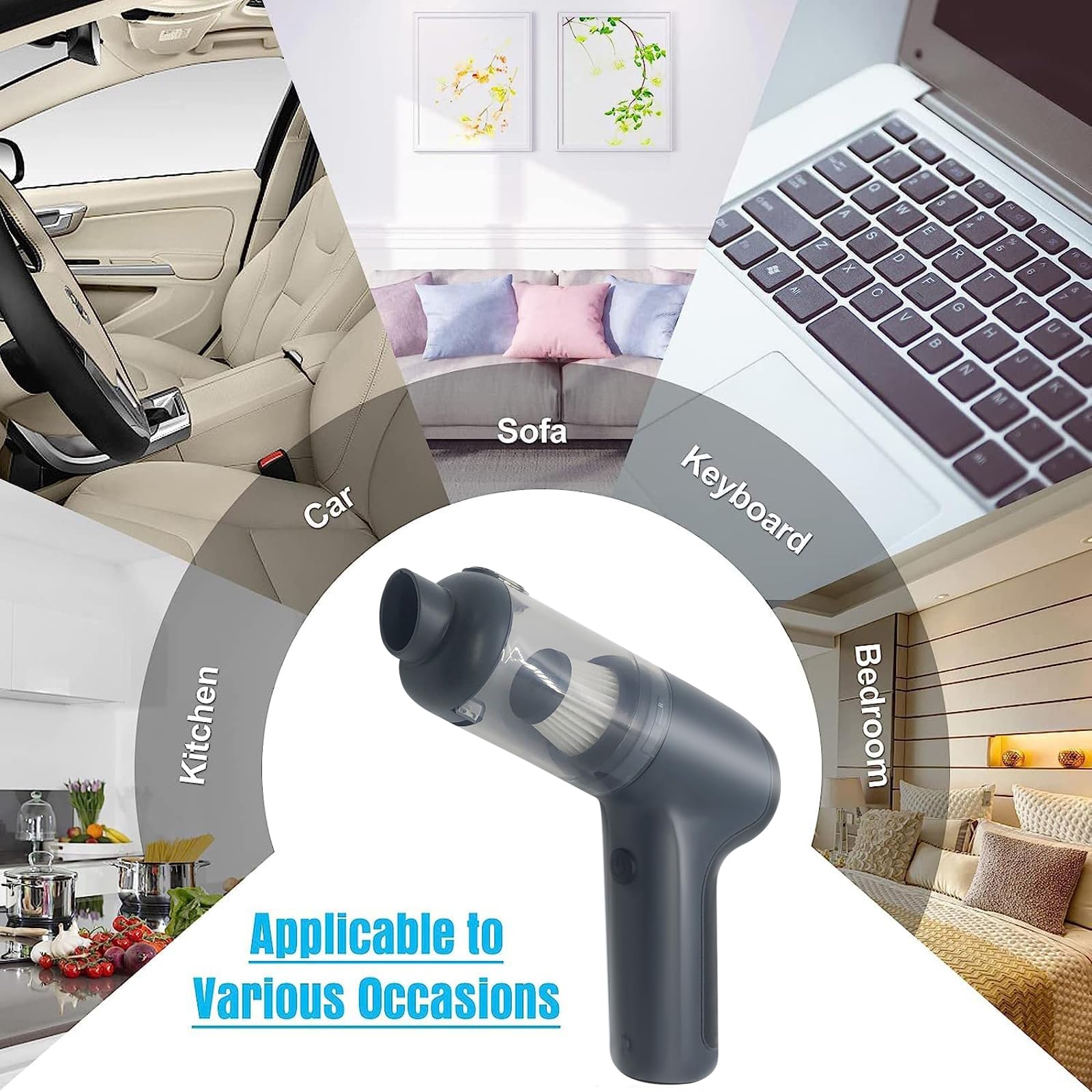 • ✅【LIGHTWEIGHT & PORTABLE】This high power car vacuum cleaner weighs only 385 grams0.85lb, you can easily clean it for a long time with the cordless handheld vacuum cleaner. The wireless design gives you ly to clean desktop, floors, carpets, sofa, keyboards and car interiors from dust. And the wireless hand vacuum cleaner has a compact design, which is easy to clean narrow areas , can be carried and d in your car, home and office without taking up any space at all