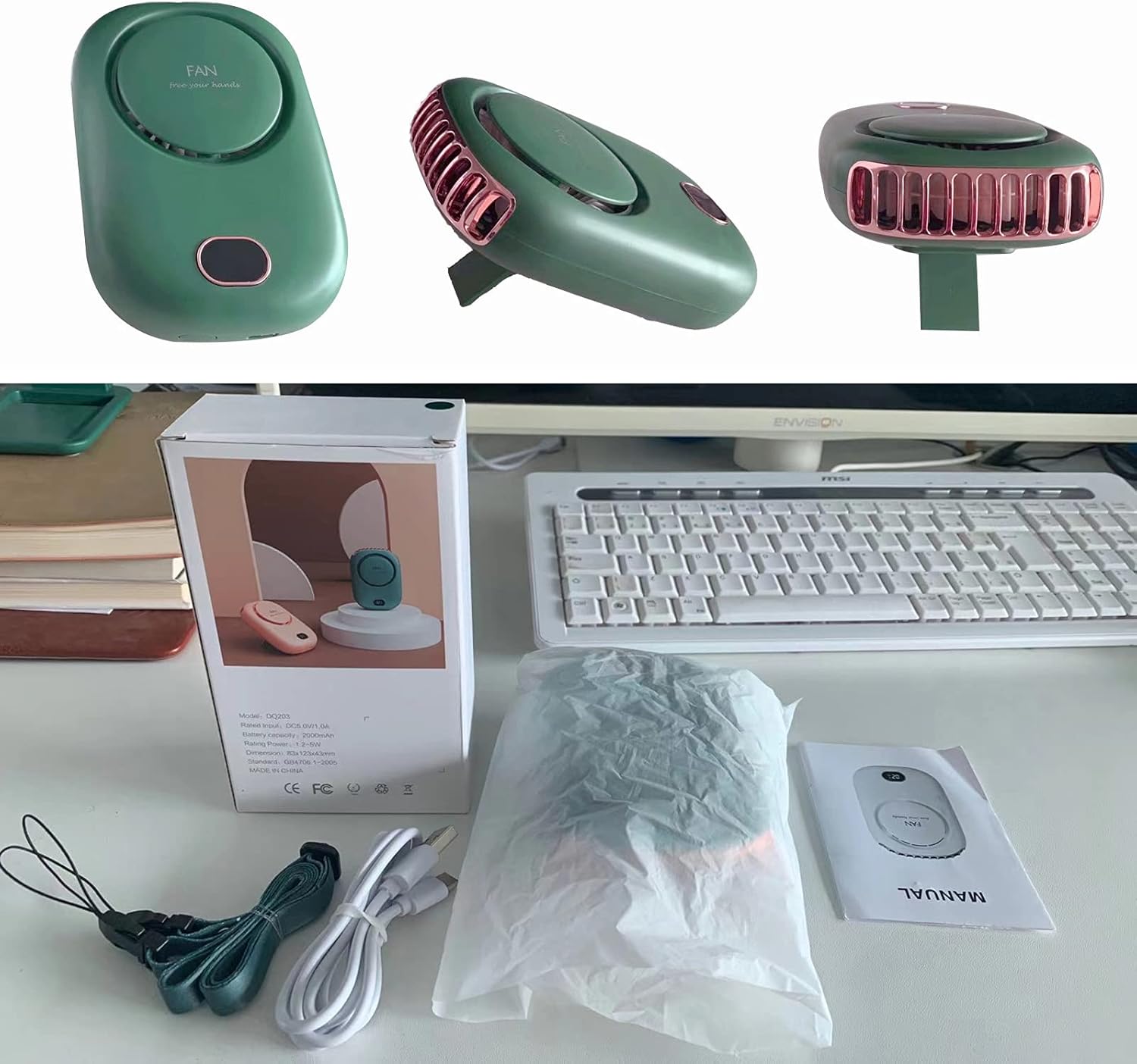 Mini Personal Fan Portable And Rechargeable With Lanyard Bracket Can Hanging Neck Put On Desk Clip Waist Outdoor Cooling
