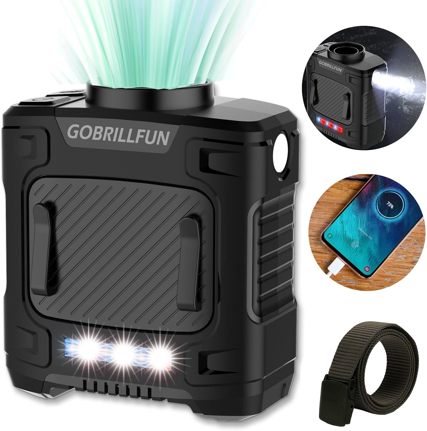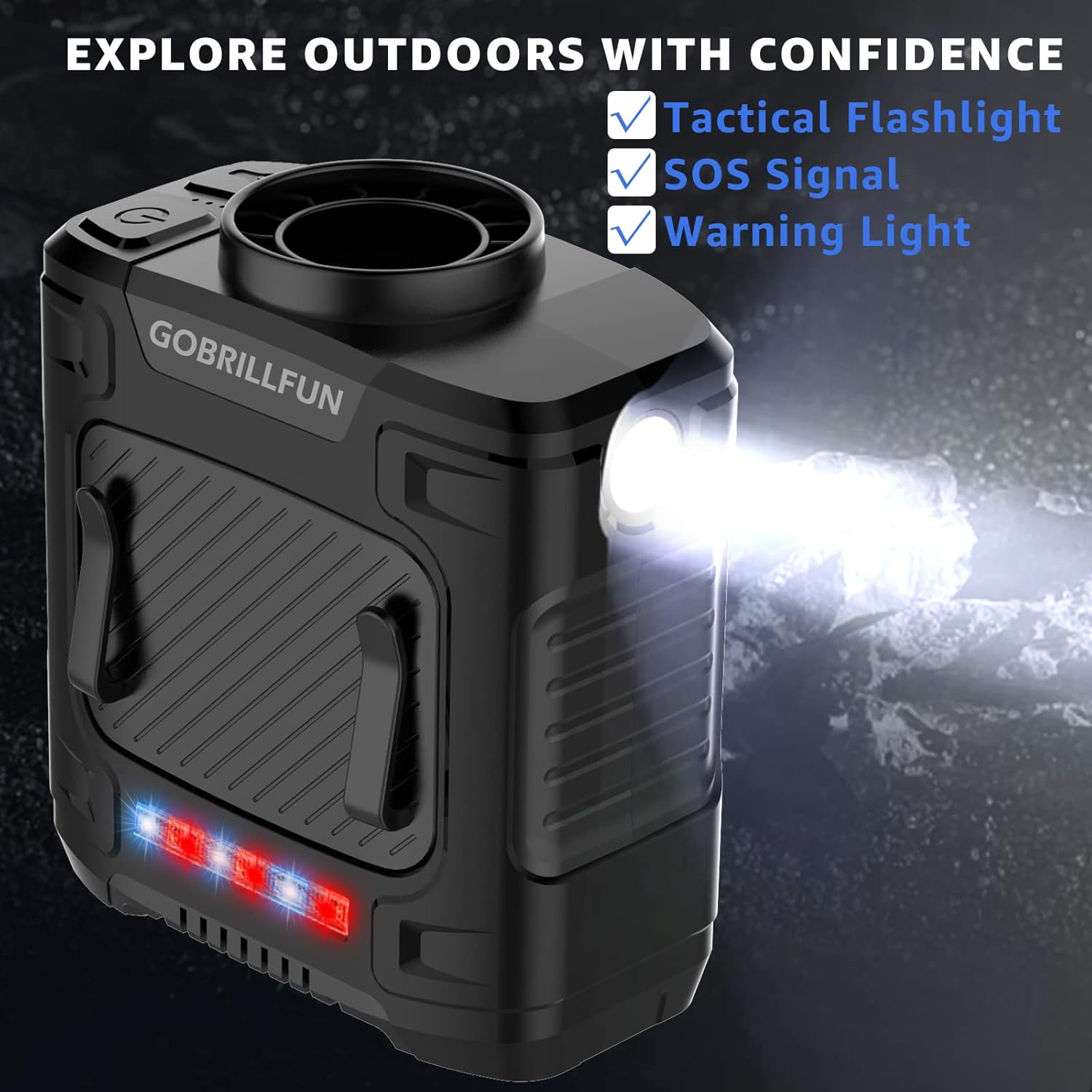 Mini Portable Waist Fan, Clip On Belt Fan, With Tactical Flashlight Sos Signal, Personal Shirt Fan Clip For Camping, Hiking