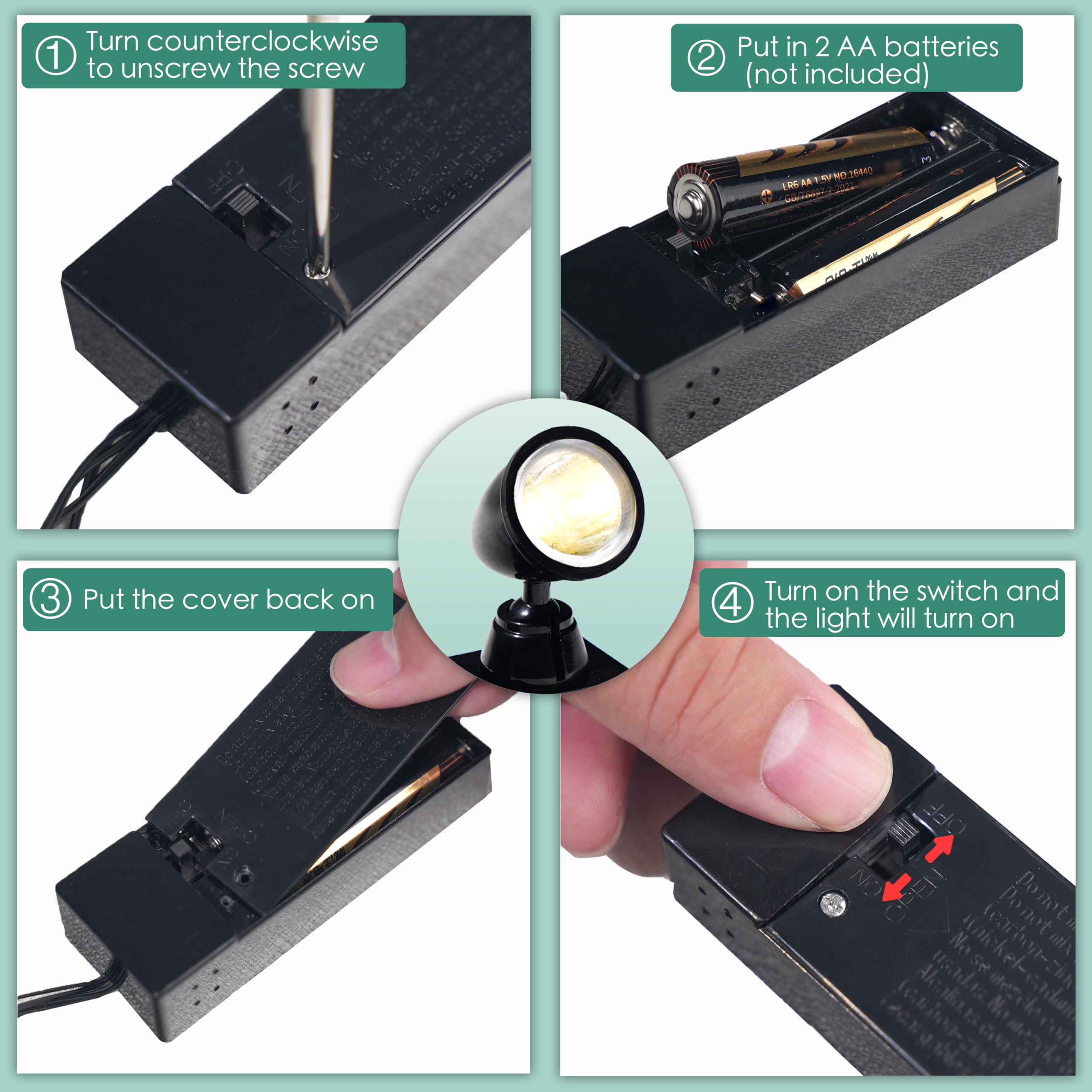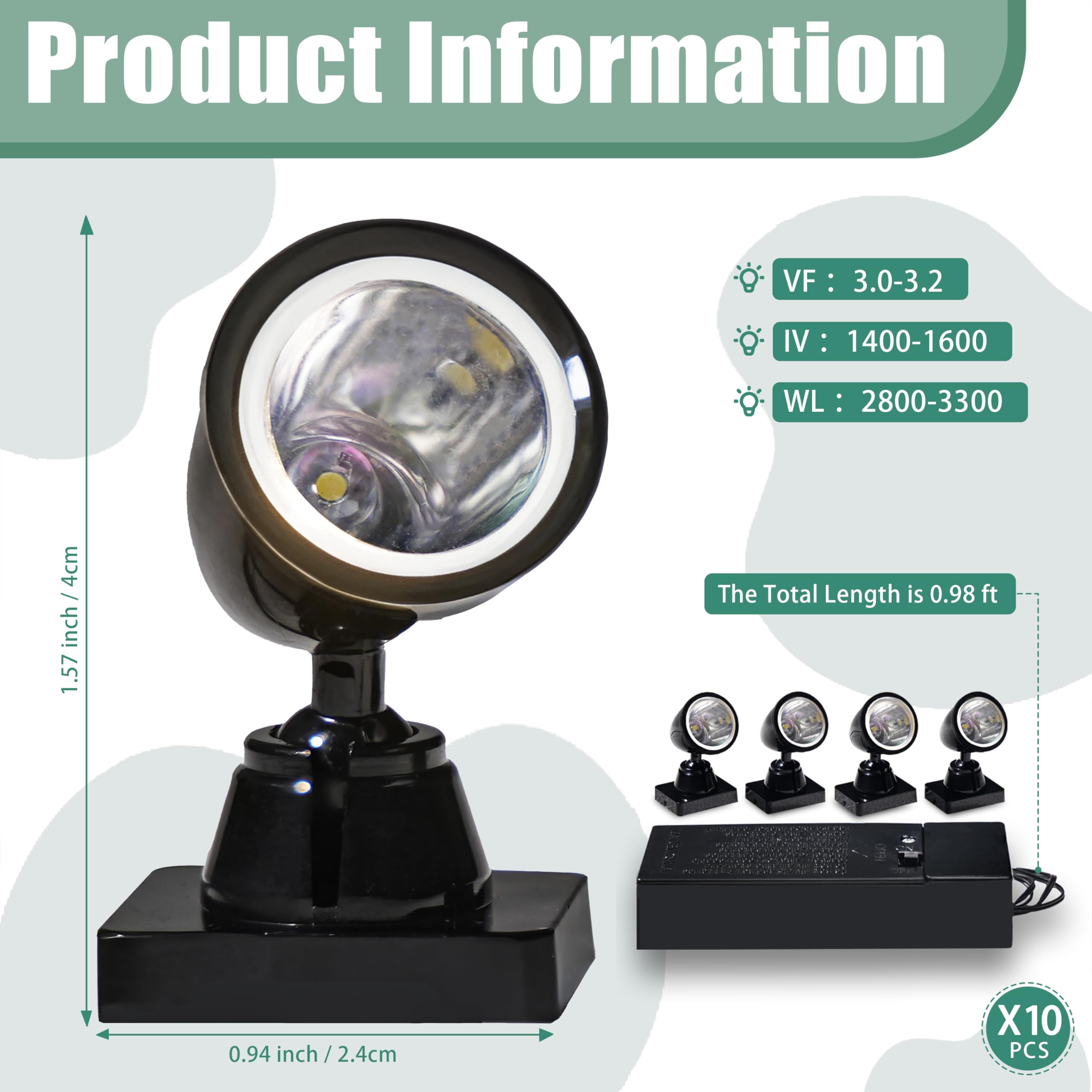Mini Spot Lights for Christmas Village LED Spotlights Mini Indoor String Lights Display Lights Accessory Cord Rotatable Uplight & Down Microscopic Plants and Accent Lighting House Decors (10 Pack)