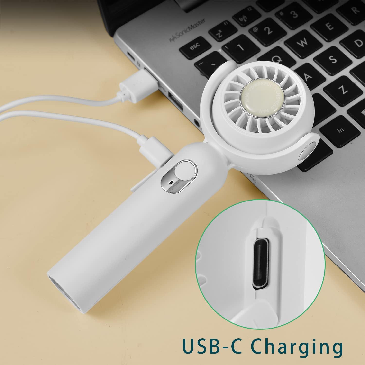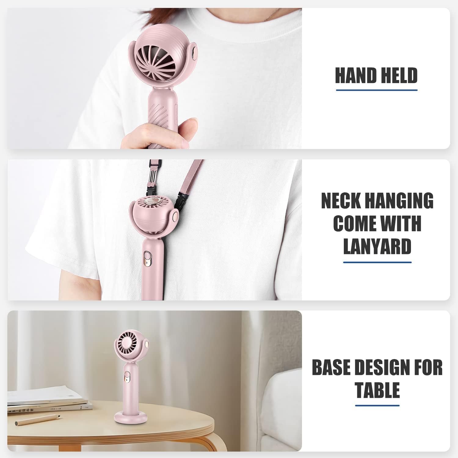 Mini Wearable Handheld Fan Battery Operated Small Portable Neck Fan Speed Adjustable UsbC Rechargeable Powerful Eyelash Fan Pink