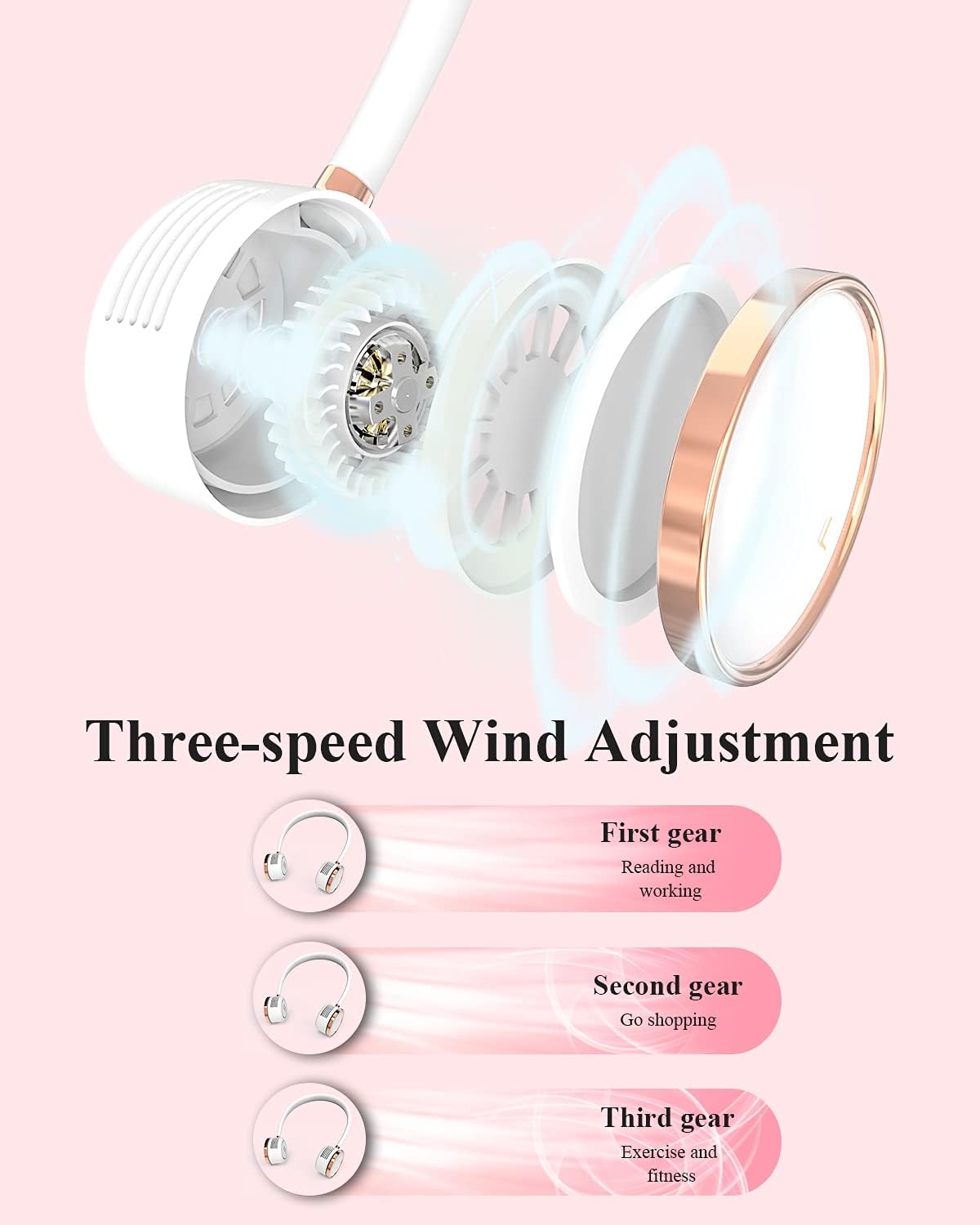 Minthouz Portable Neck Fan, 3 Speeds Wearable Personal Fan Hands Free Bladeless Fan, 2000Mah Rechargeable Battery Operated Usb
