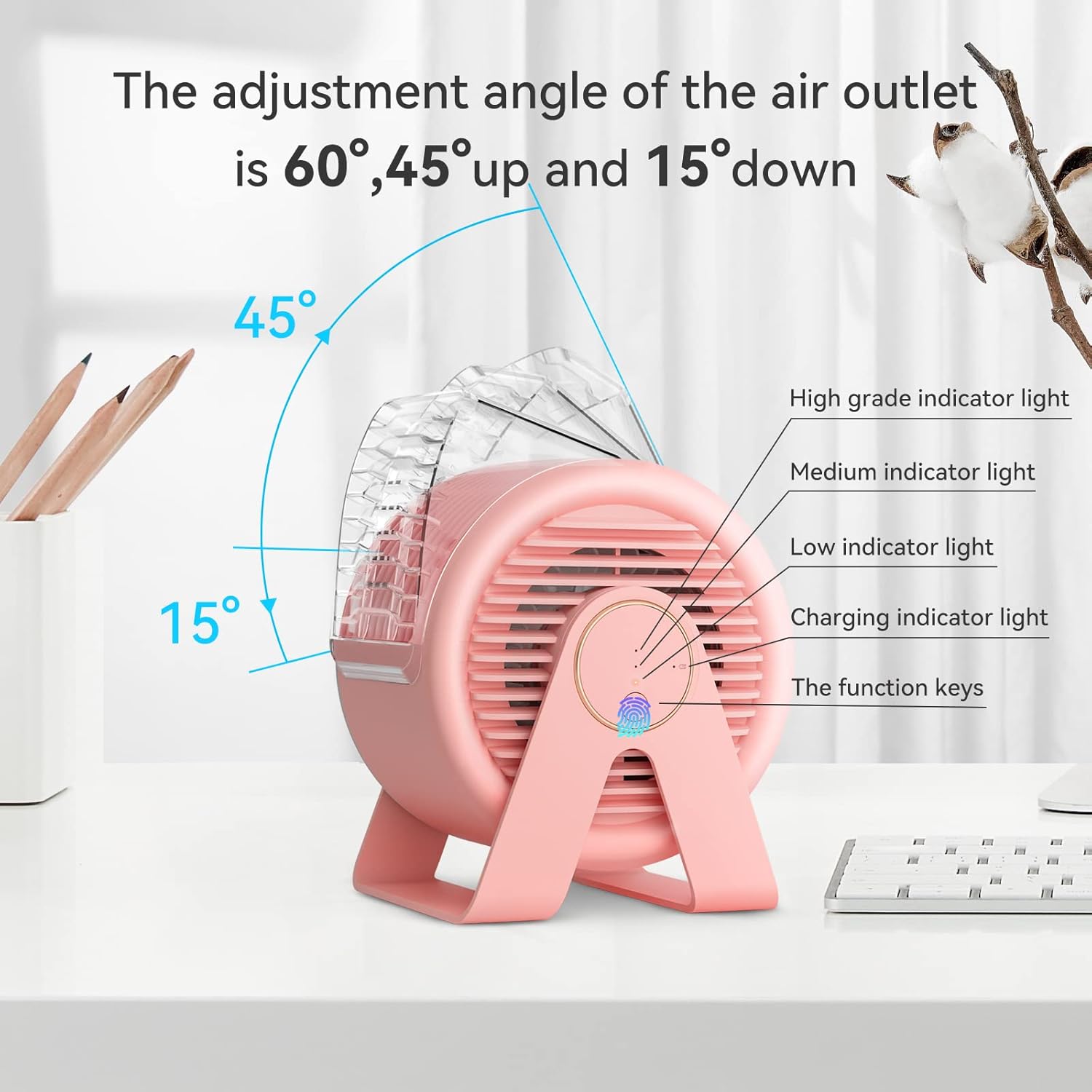 • ❃【Lightweight Quiet Fan】Small desk fan with upgraded vortex action motor and its 0.97lb weight, 4 antislip mats on the bottom allow the perfect fans to stand steadily, not moving an inch or flipping over even on the high level. This fan has longer lifespan than others,whether you are at work, studying or resting, it will not disturb you. Max noise level: 40 db.