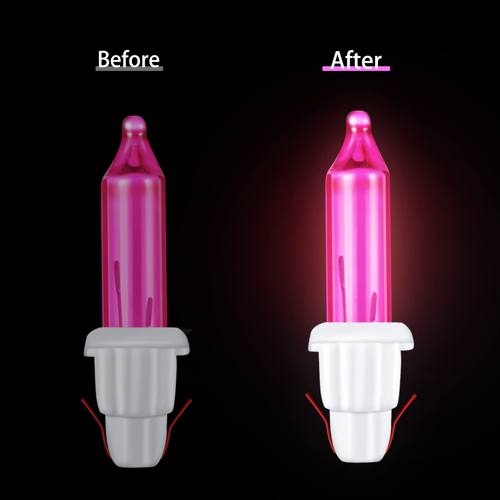 • Pink Lights: our Christmas lights feature pink glowing lighting effect, creating a warm and romantic festive atmosphere Pick the color that suits your usage scenario, nice for artificial Christmas tree, wreaths and garlands light bulbs well, ideal for replacing existing bulbs that have burnt out or grown old