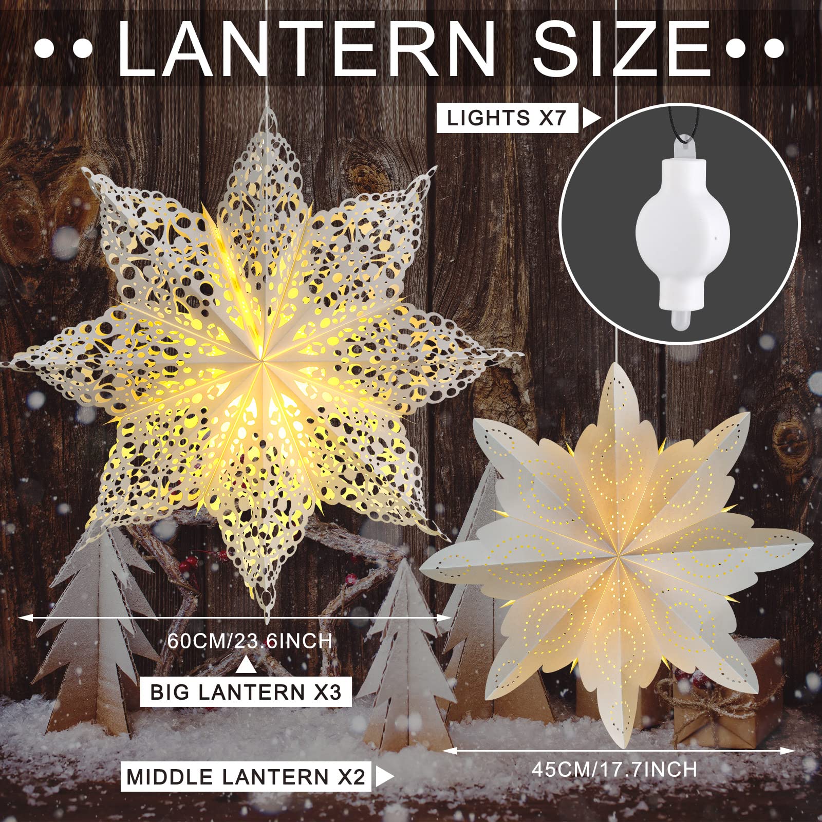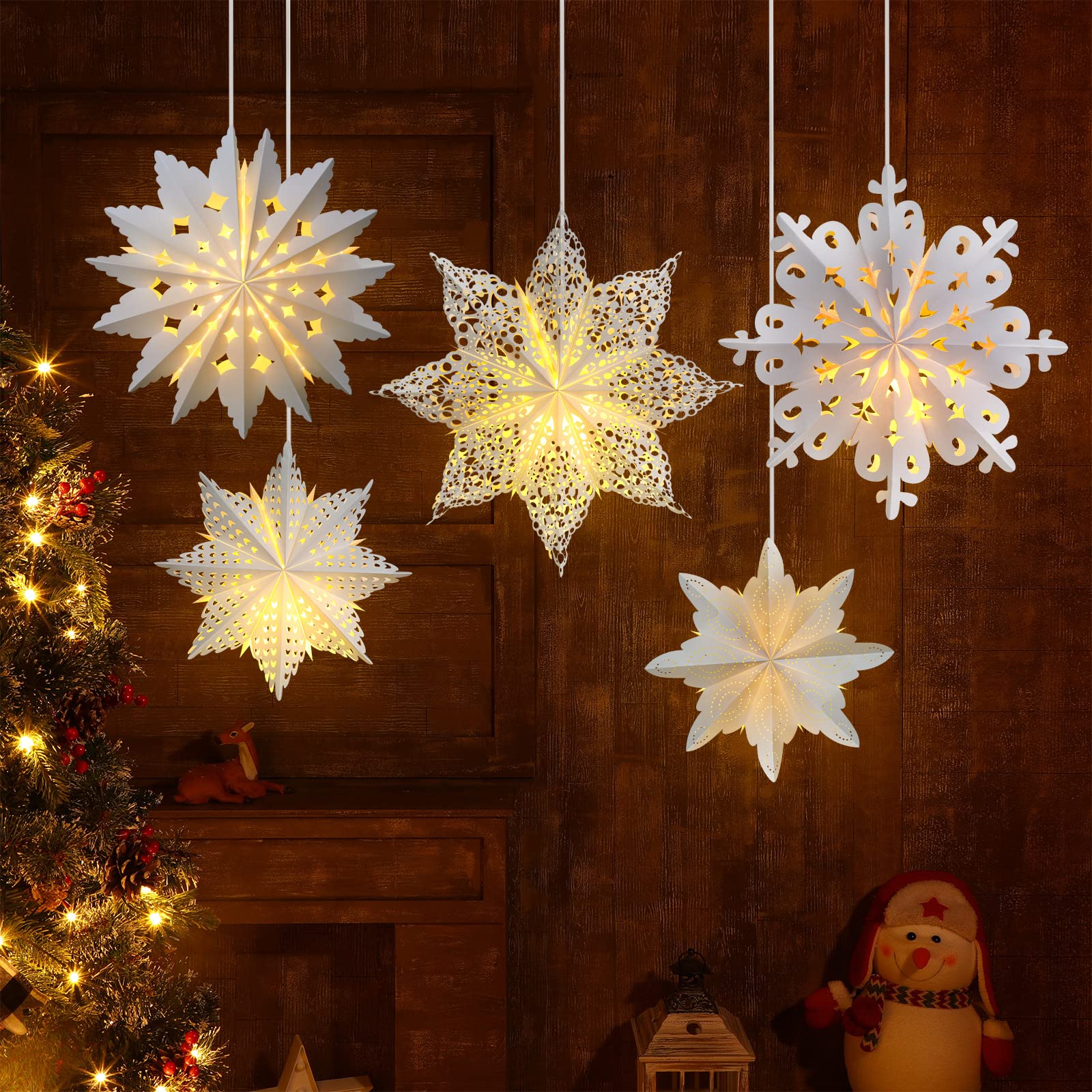 Mudder 5 Pieces Christmas Snowflake Paper Lantern with 7 Light Star Lamp Frozen Party Hanging Decoration for Weddings Trees Birthday Holiday Celebration (CL-TOOLS-C9875)