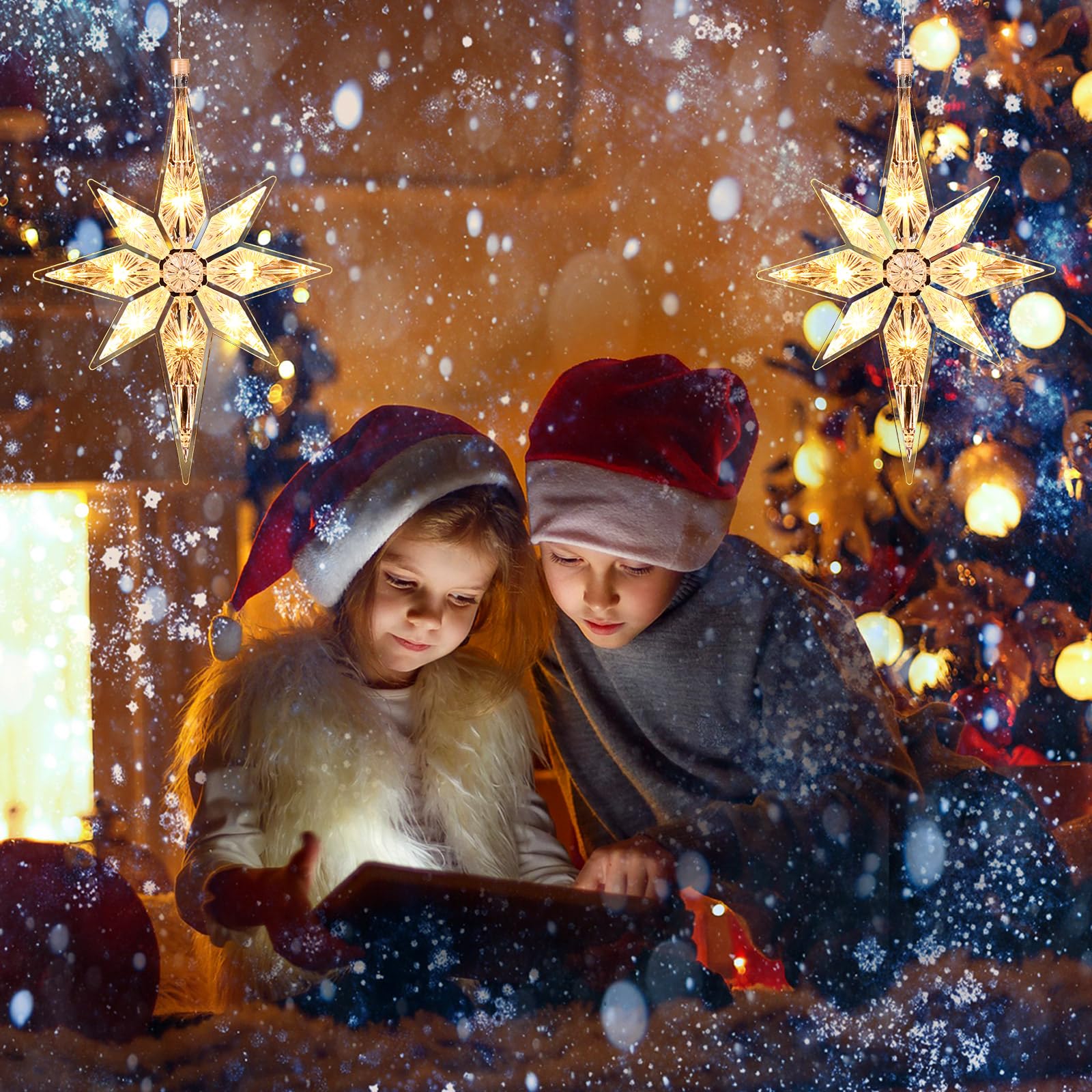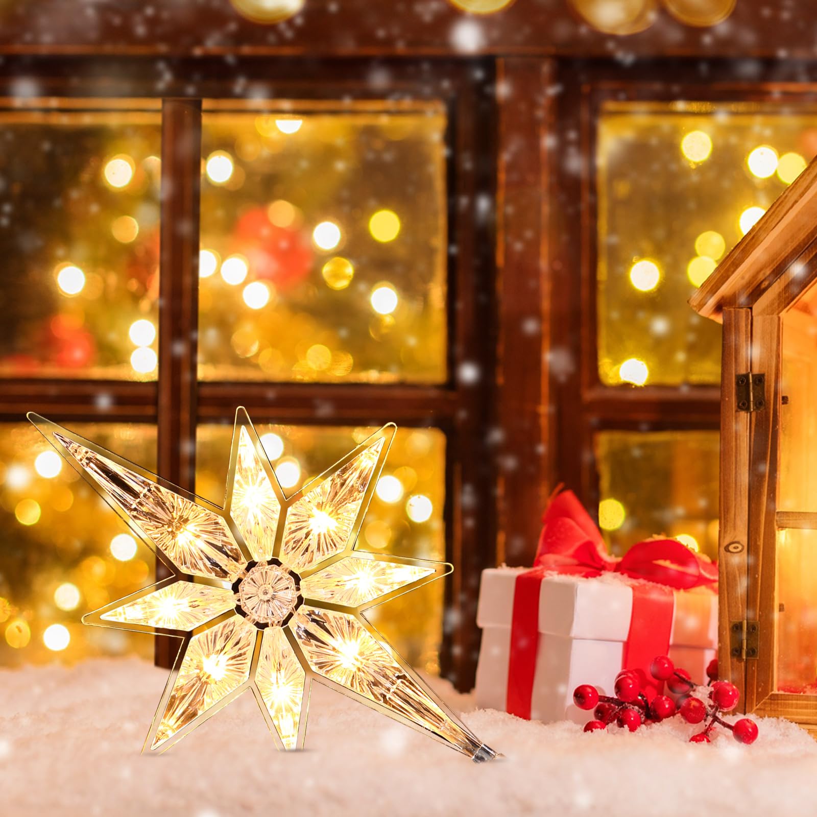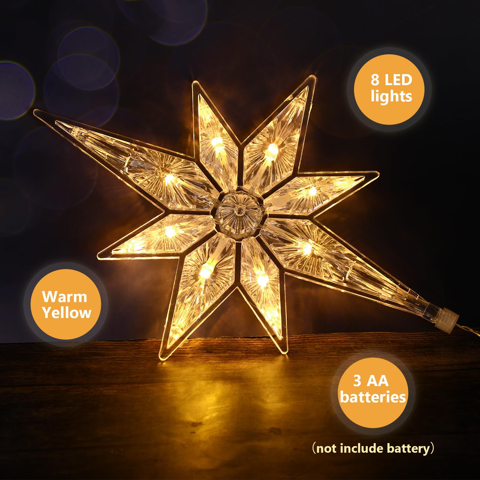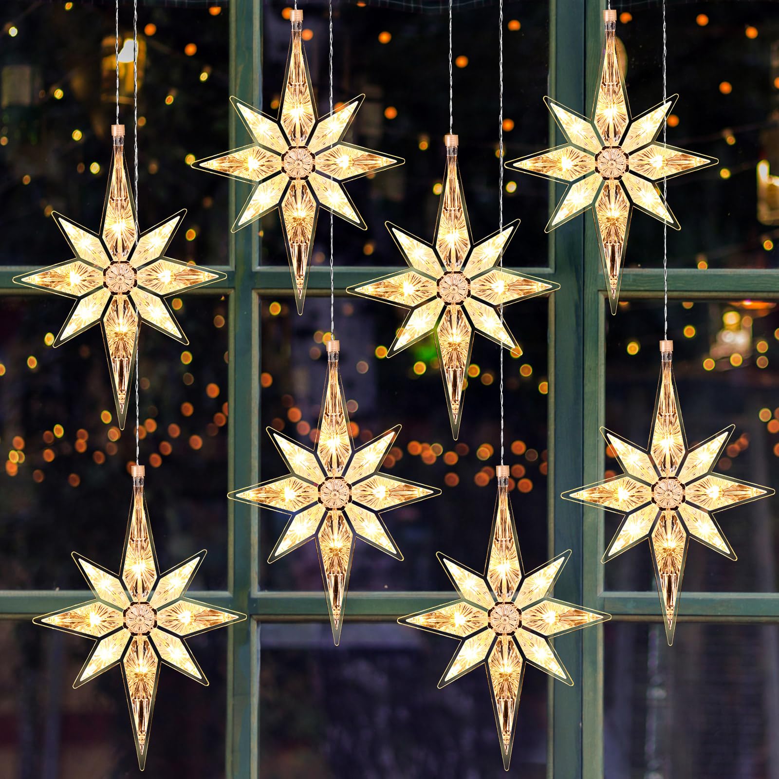 Mudder 8 Pieces 10.8 Inch Christmas Window Star Lights Plastic Lighted Star Tree Topper Decoration Large Hanging Stars Christmas Window Lights LED Star Window Silhouette Decoration (Warm White)