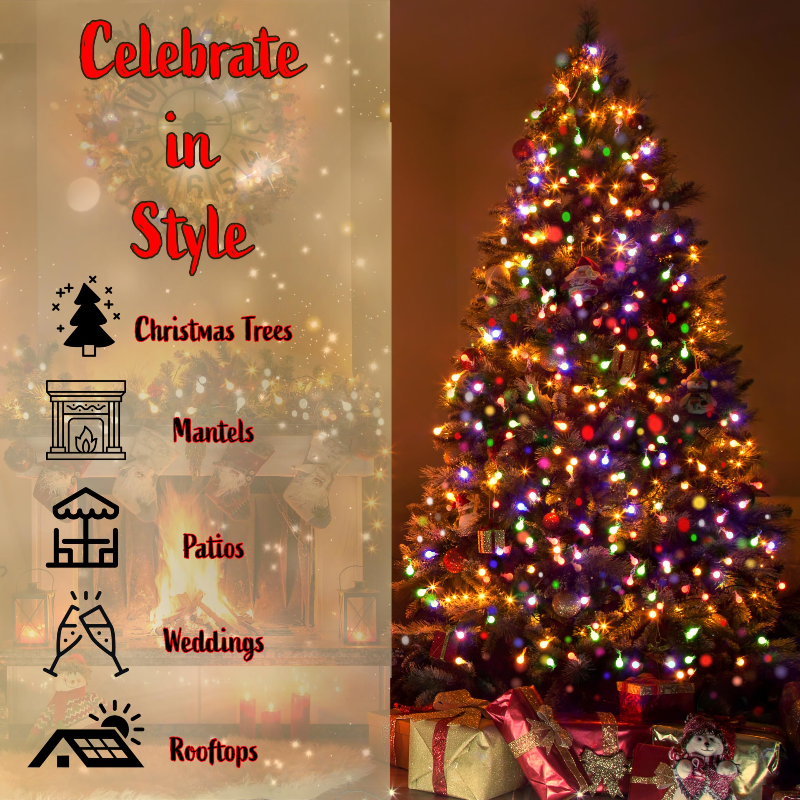 Multi Color Christmas String Lights, 100 Incandescent 20 Feet Green Wire Indoor Outdoor Waterproof Holiday Christmas Tree Lights Set with Static & Flashing Twinkle Function Connectible Plug in
