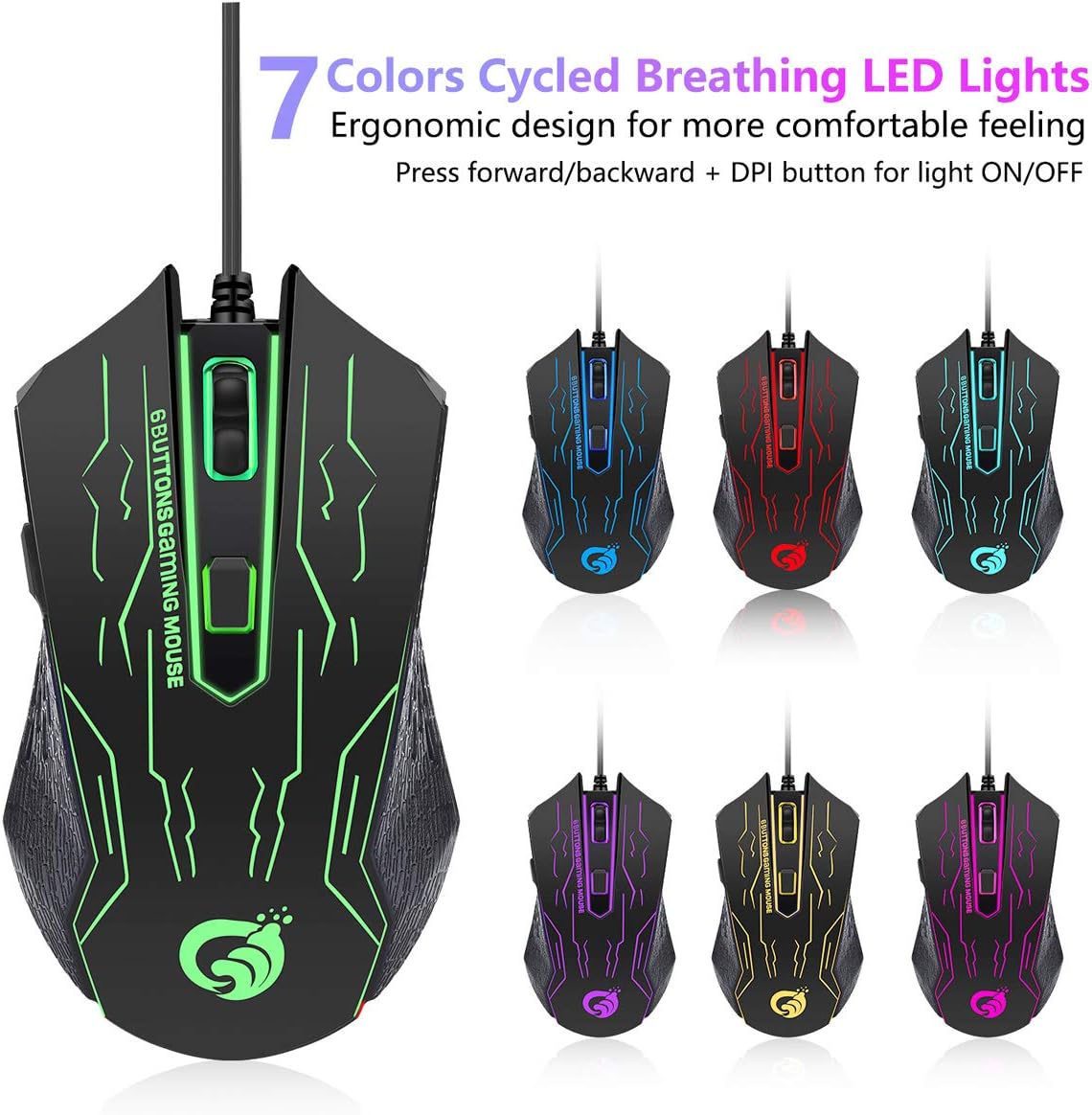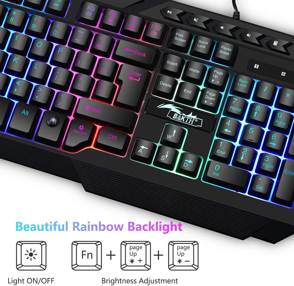 Multiple Color LED Rainbow Backlit Wired Gaming Keyboard and Mouse Combo, USB Ergonomic Computer Keyboard with 7 Colors 3600DPI 6 Button Mouse for PC Windows Mac Game and Work