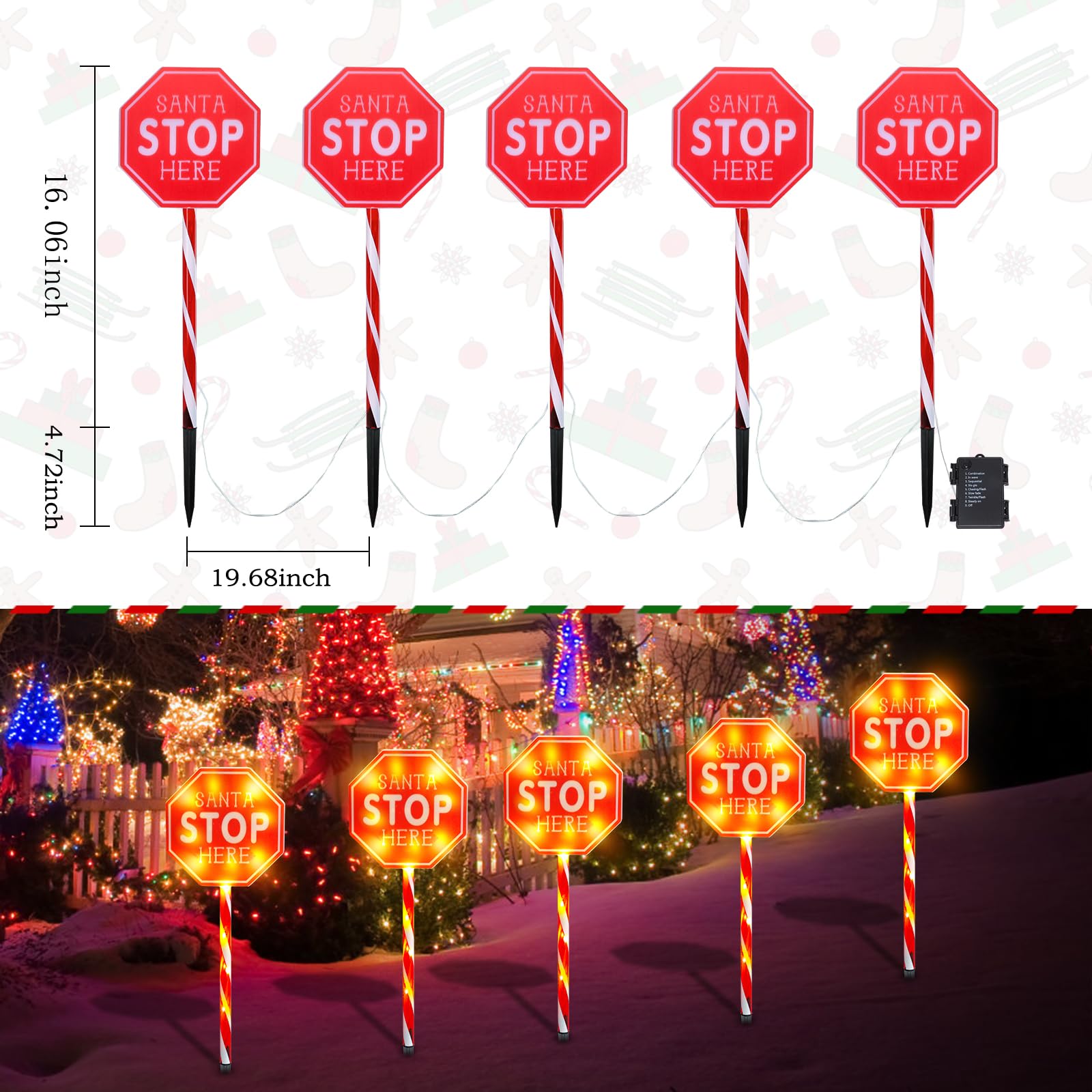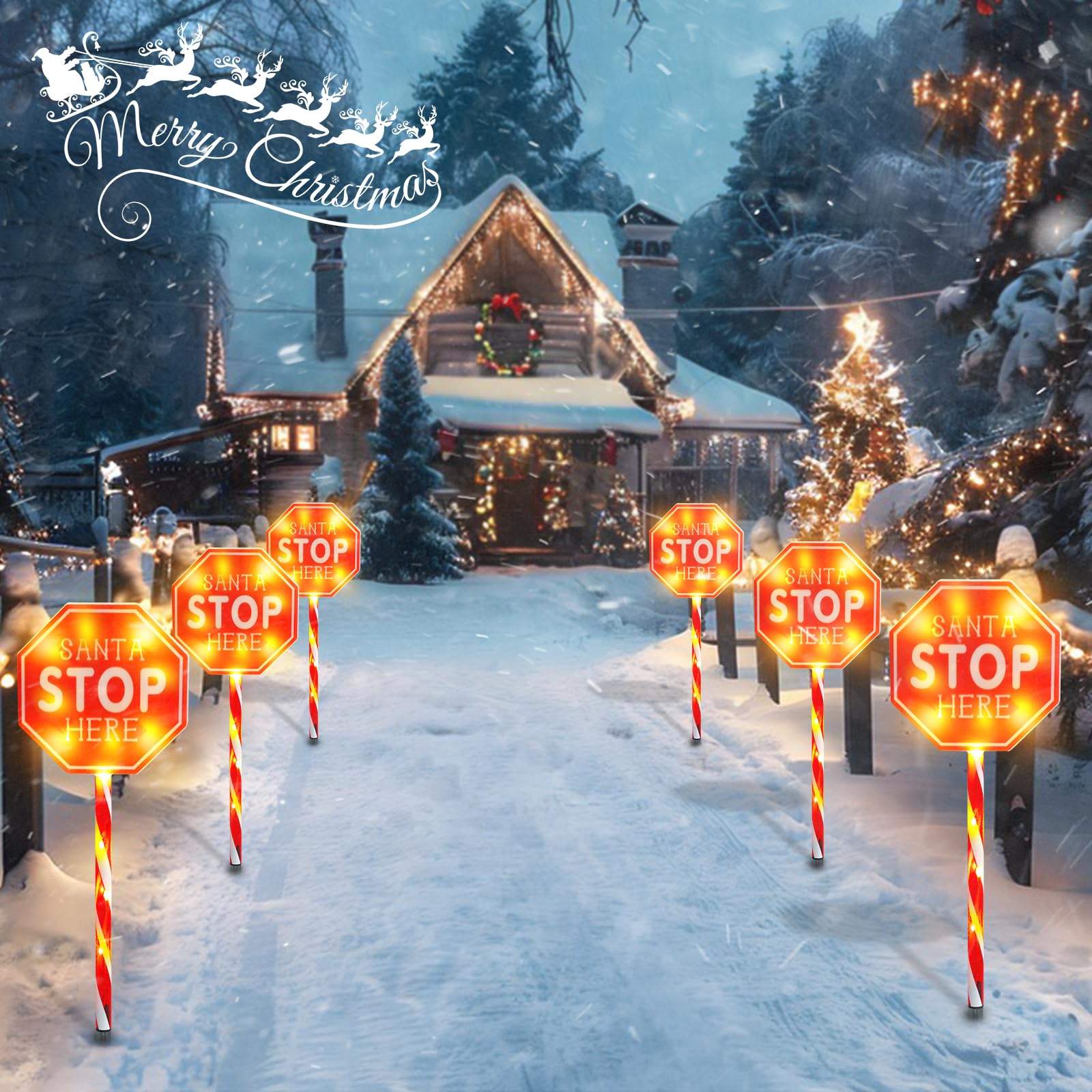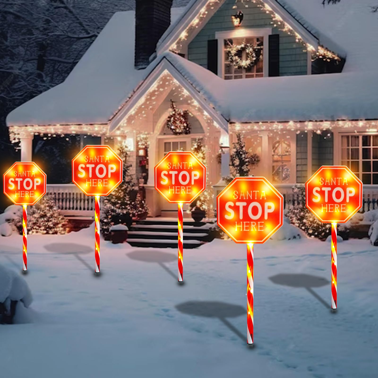MUMTOP 5 Pack Santa Stop Here Christmas Decorations, Battery Operated Pathway Christmas Stake Lights, Outdoor Christmas Lights for Lawn Yard Garden