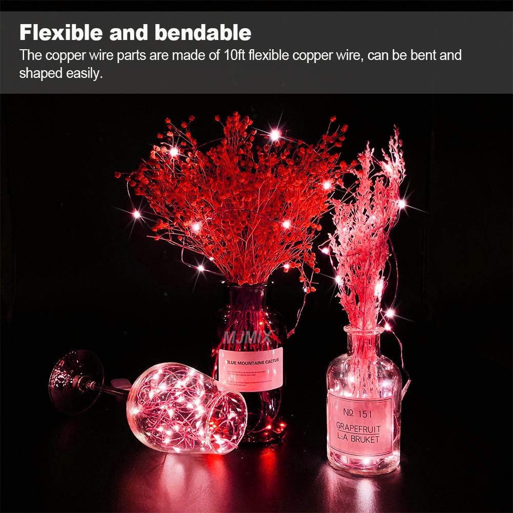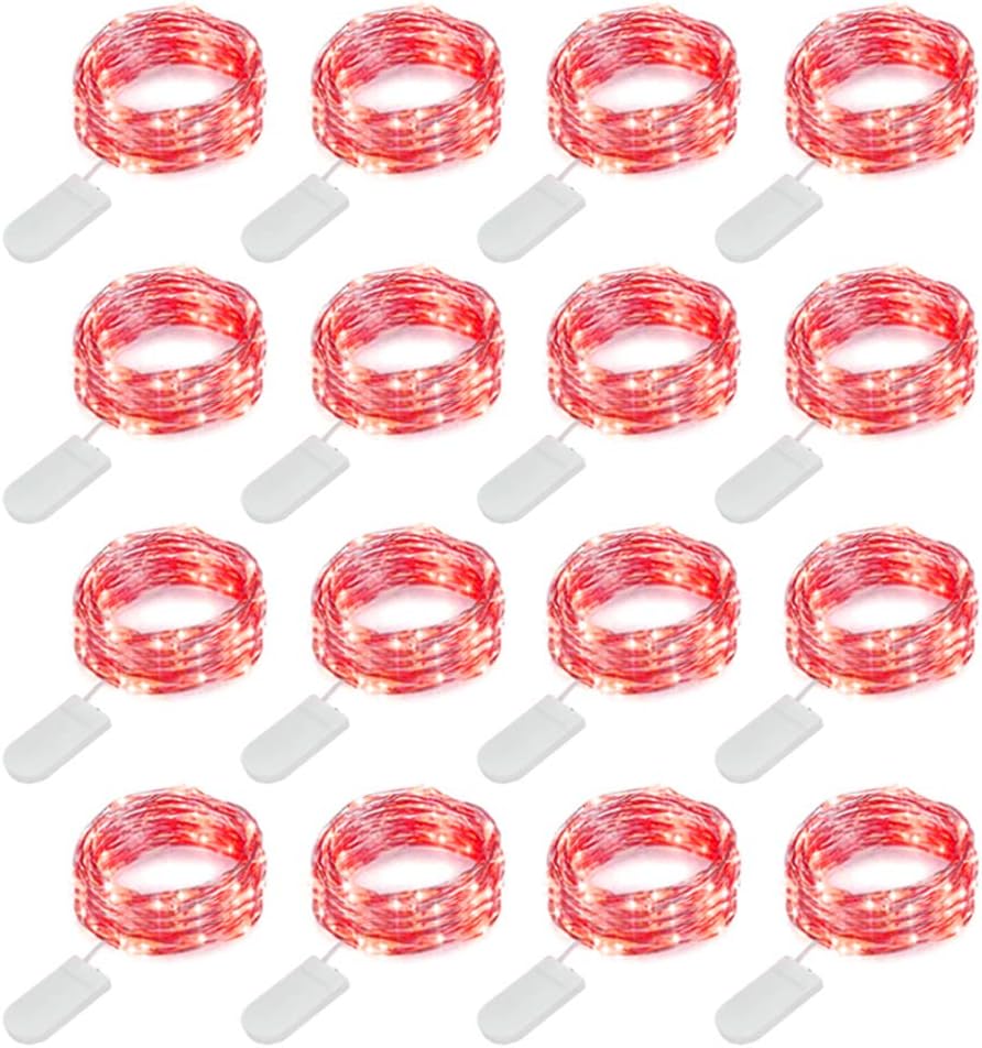 MUMUXI 16 Pack Fairy Lights Battery Operated (Included) 10ft 30 LED Mini String Lights Waterproof Copper Wire Firefly Starry Lights for DIY Wedding Party Mason Jars Christmas Decorations, Red