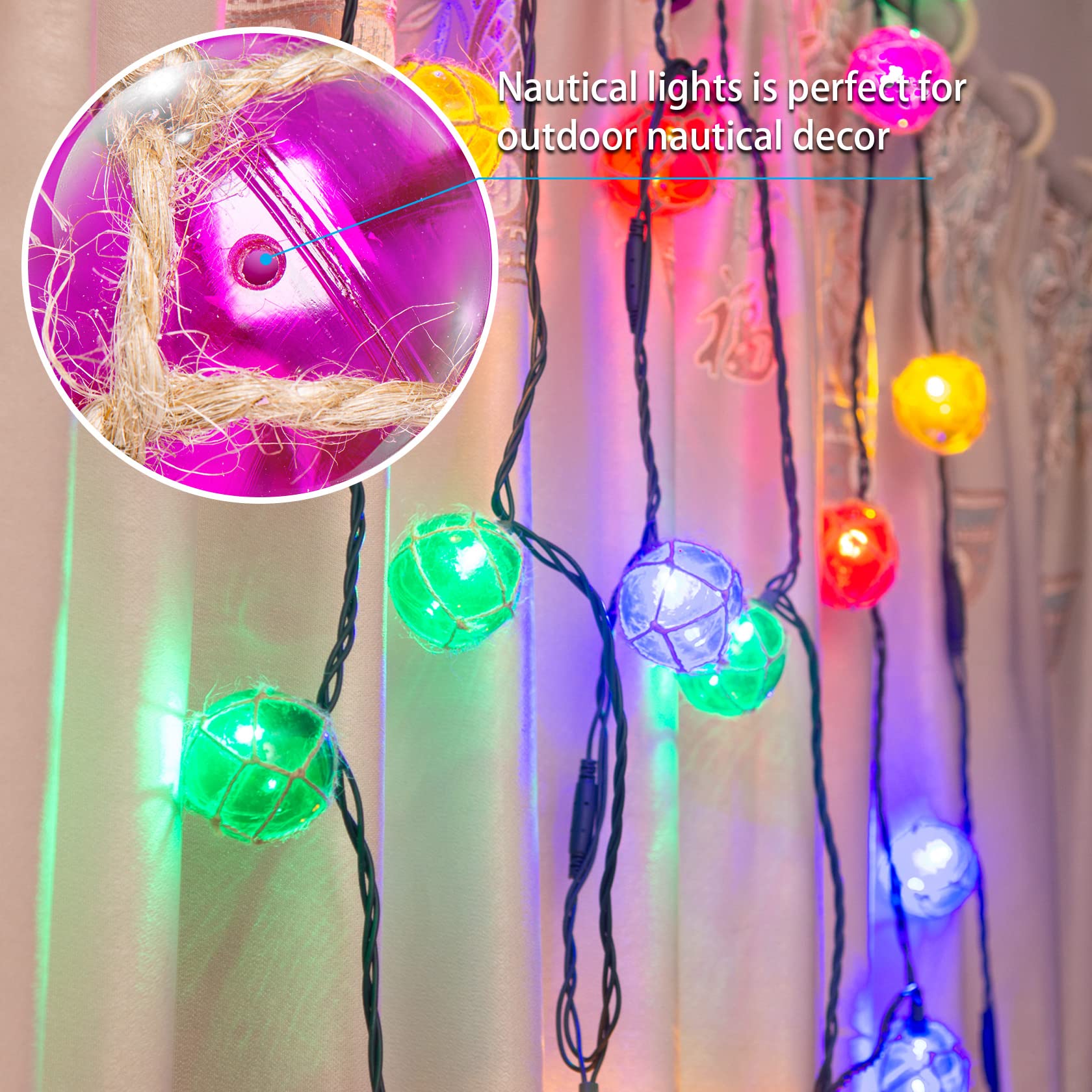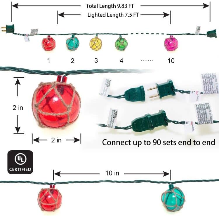 Nautical Lights String Plug in , 10 LED Buoy String Lights Home Tiki Bar Decorations, Nautical Fishing Float String Lights Coastal Beach Theme for Lanai Bedroom Patio Porch Outdoor Nautical Decor
