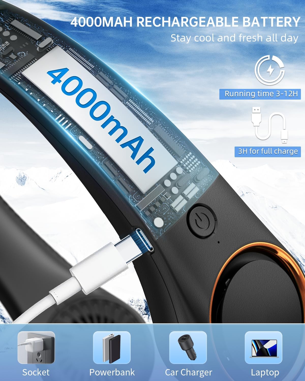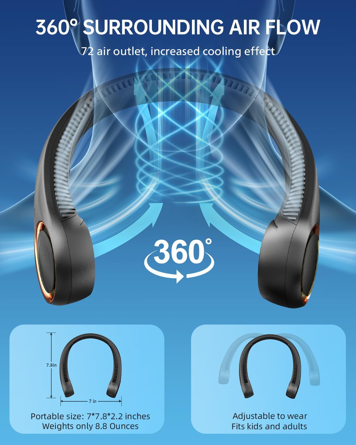 Neck Fan, Neck Fans For Men 4000Mah Personal Bladeless Fan Portable Rechargeable, 3 Speeds, 360° Surrounding Airflow, Faster Cool