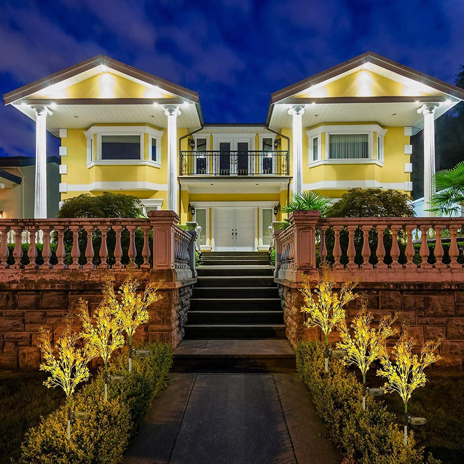Neporal Solar Lights Outdoor Decorative 2PK, 7-Stems Golden Solar Flowers Outdoor Waterproof for Garden, Yard, Patio,Flower Pots - Gardening Gifts for Women