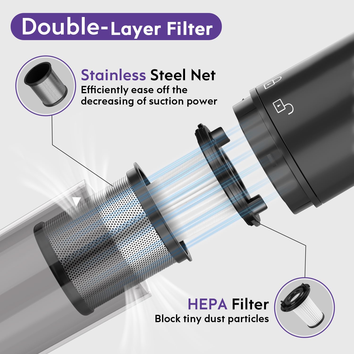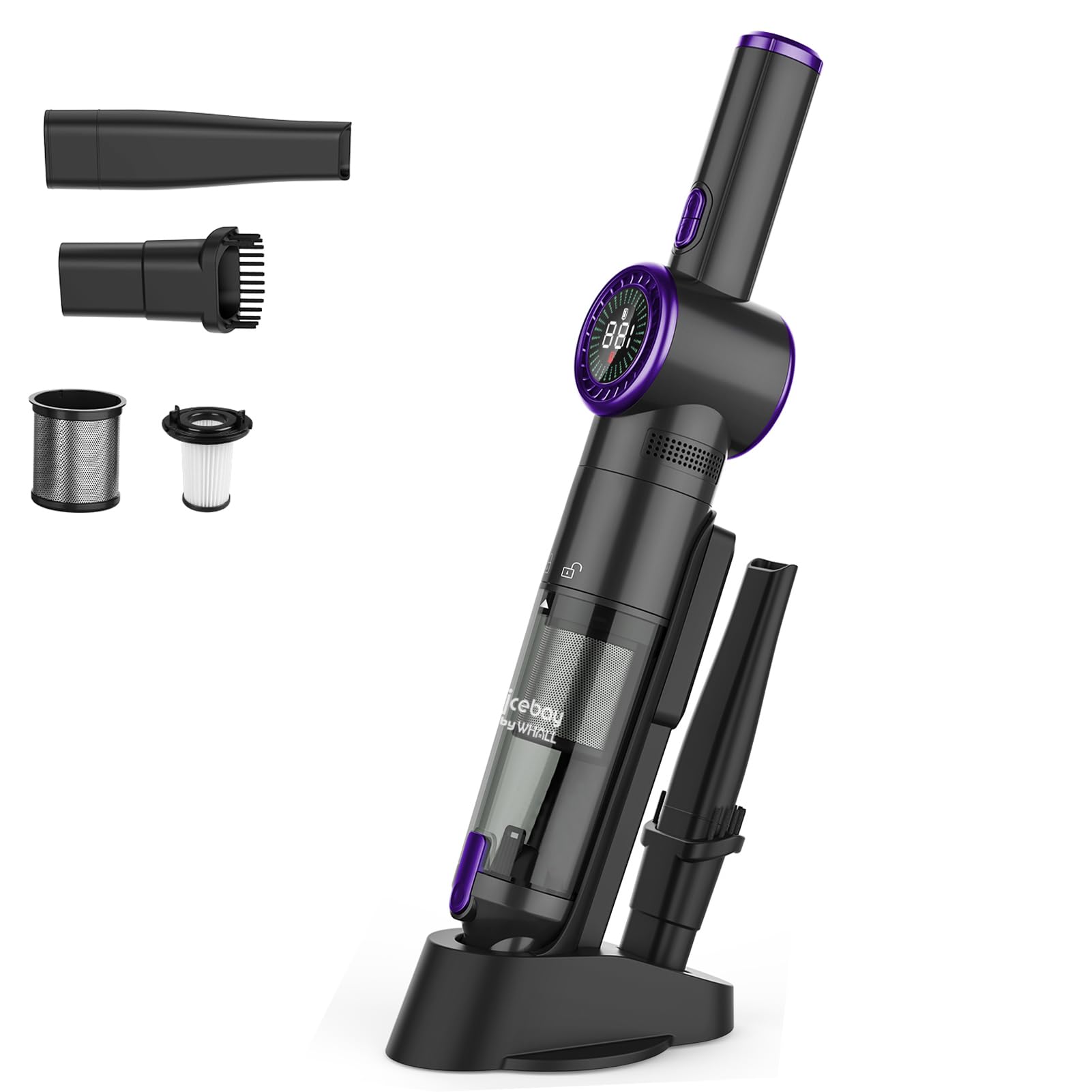 Nicebay Cordless Handheld Vacuum Cleaner, 15Kpa Strong Suction Portable Hand Vacuum Cleaner, Led Display Car Vacuum Cleaner, Fast Charging Dock, Rechargeable Handheld Vacuum Black & Purple
