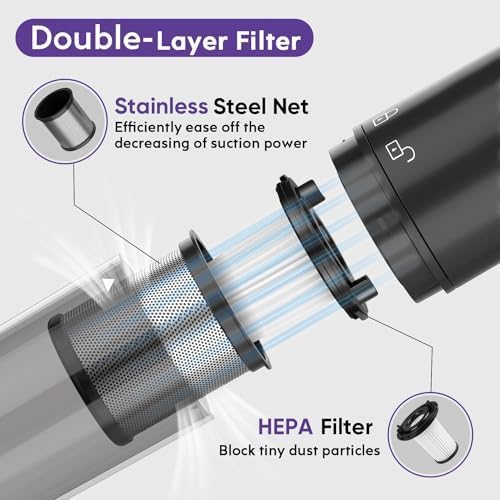 Nicebay Cordless Handheld Vacuum Cleaner, 15Kpa Strong Suction Portable Hand Vacuum Cleaner, Led Display Car Vacuum Cleaner, Fast Charging Dock, Rechargeable Handheld Vacuum Purple