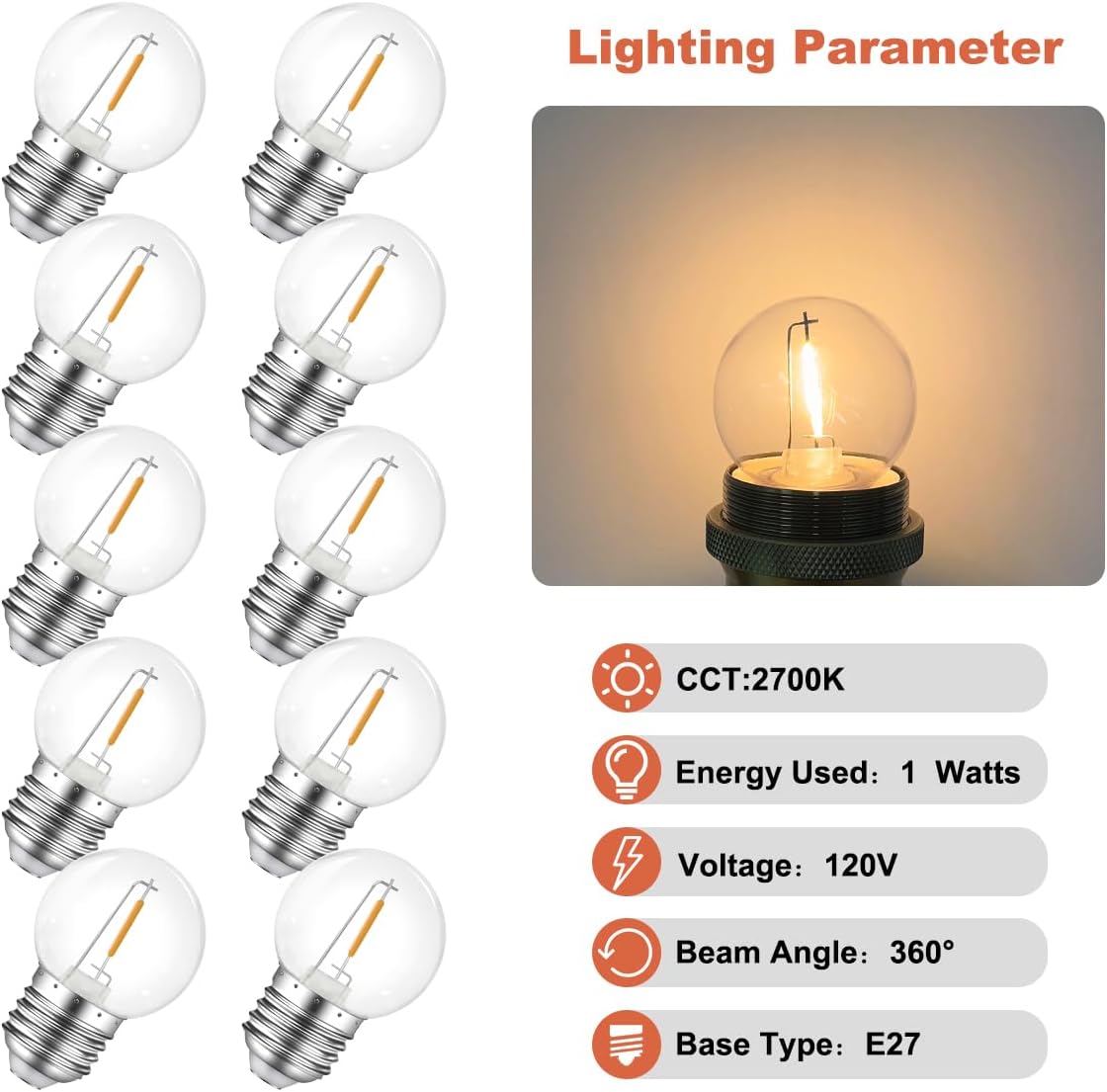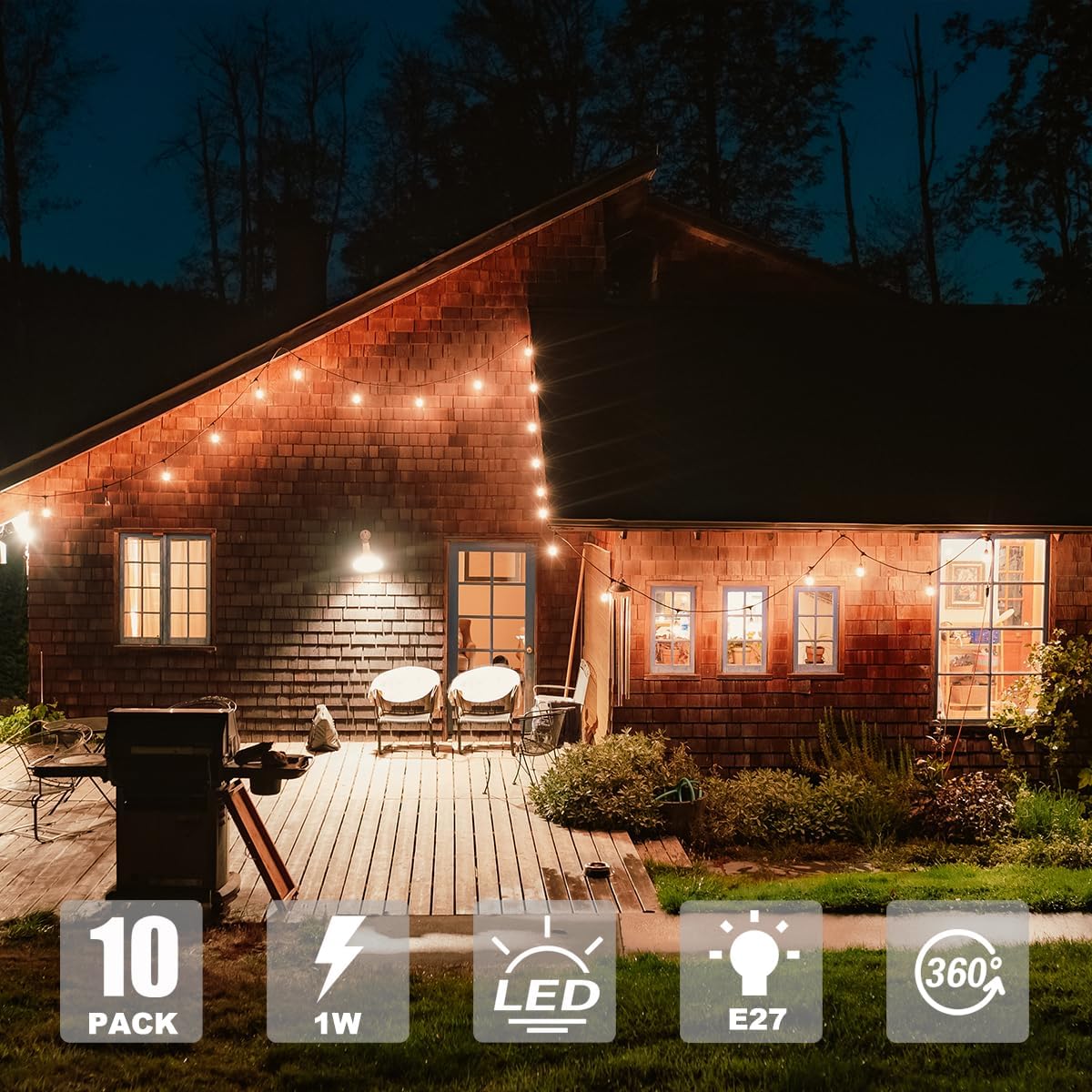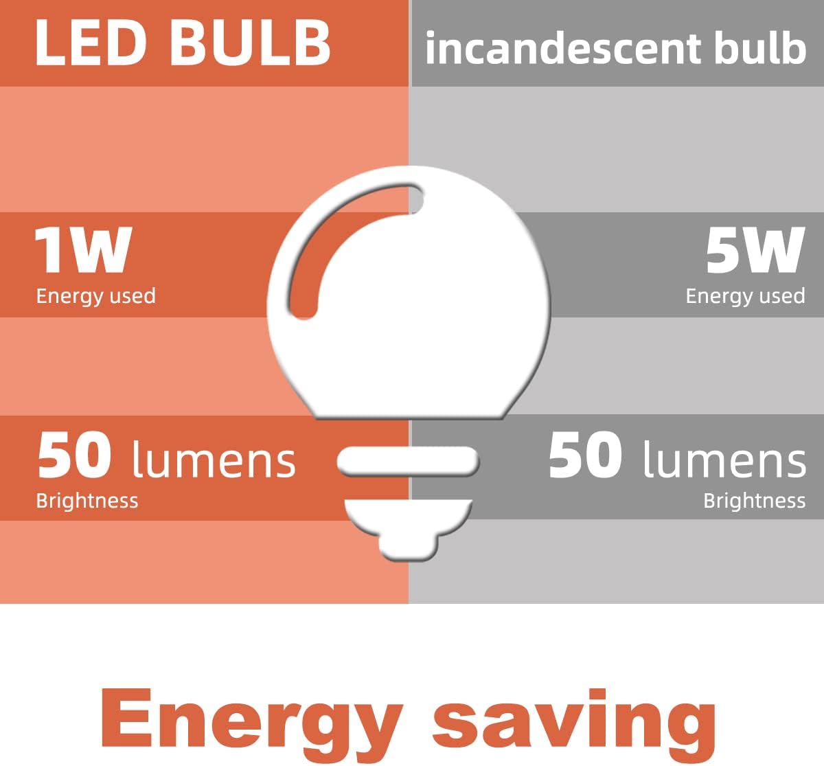 Night Light Bulbs,E27 LED 1W Light Bulb,Low Watt LED Light Bulbs,Warm White 2700K,E27 LED Bulb Decorative for String Lights Christmas Wedding Party Decor,Clear,Plastic,AC 120V,10 Pack